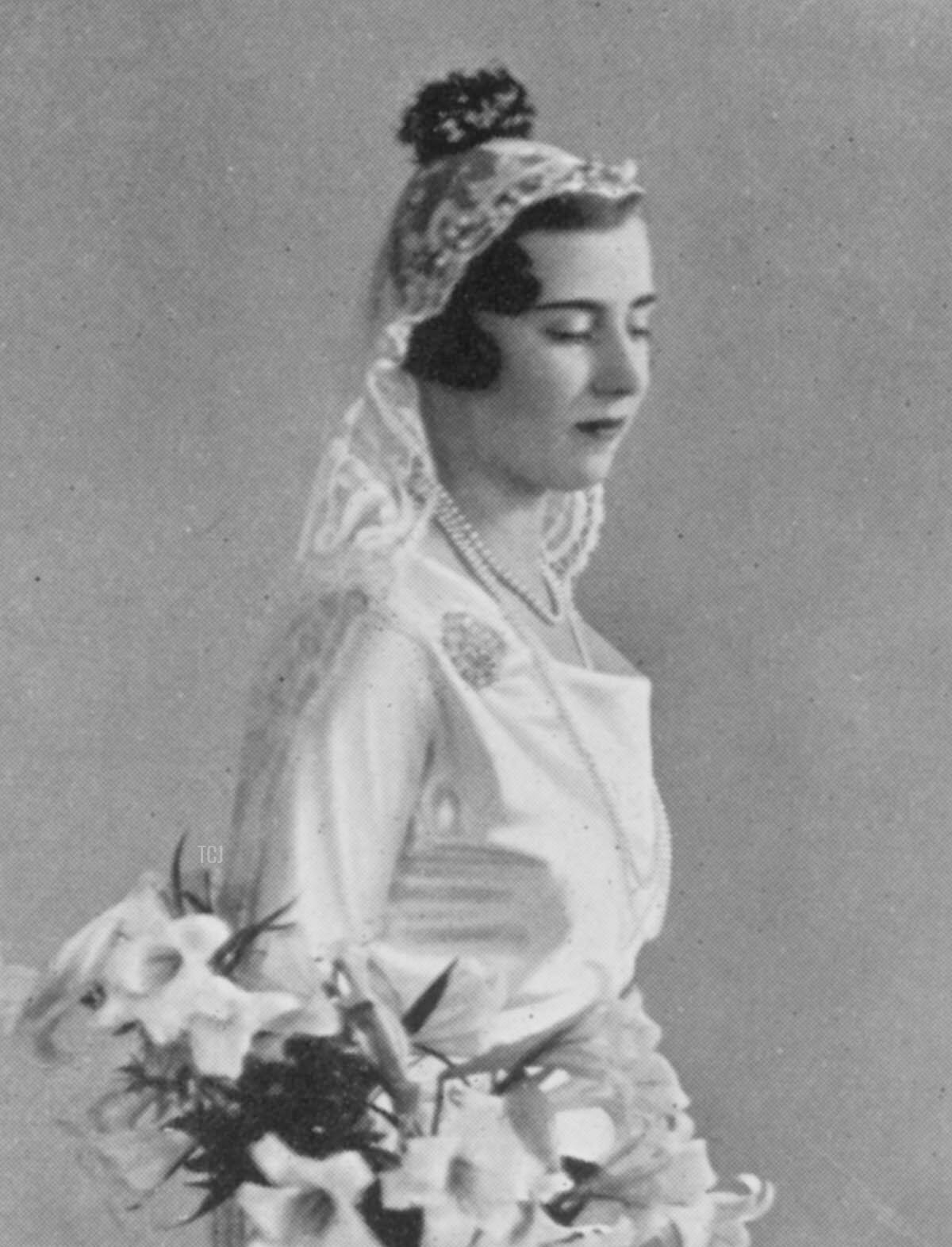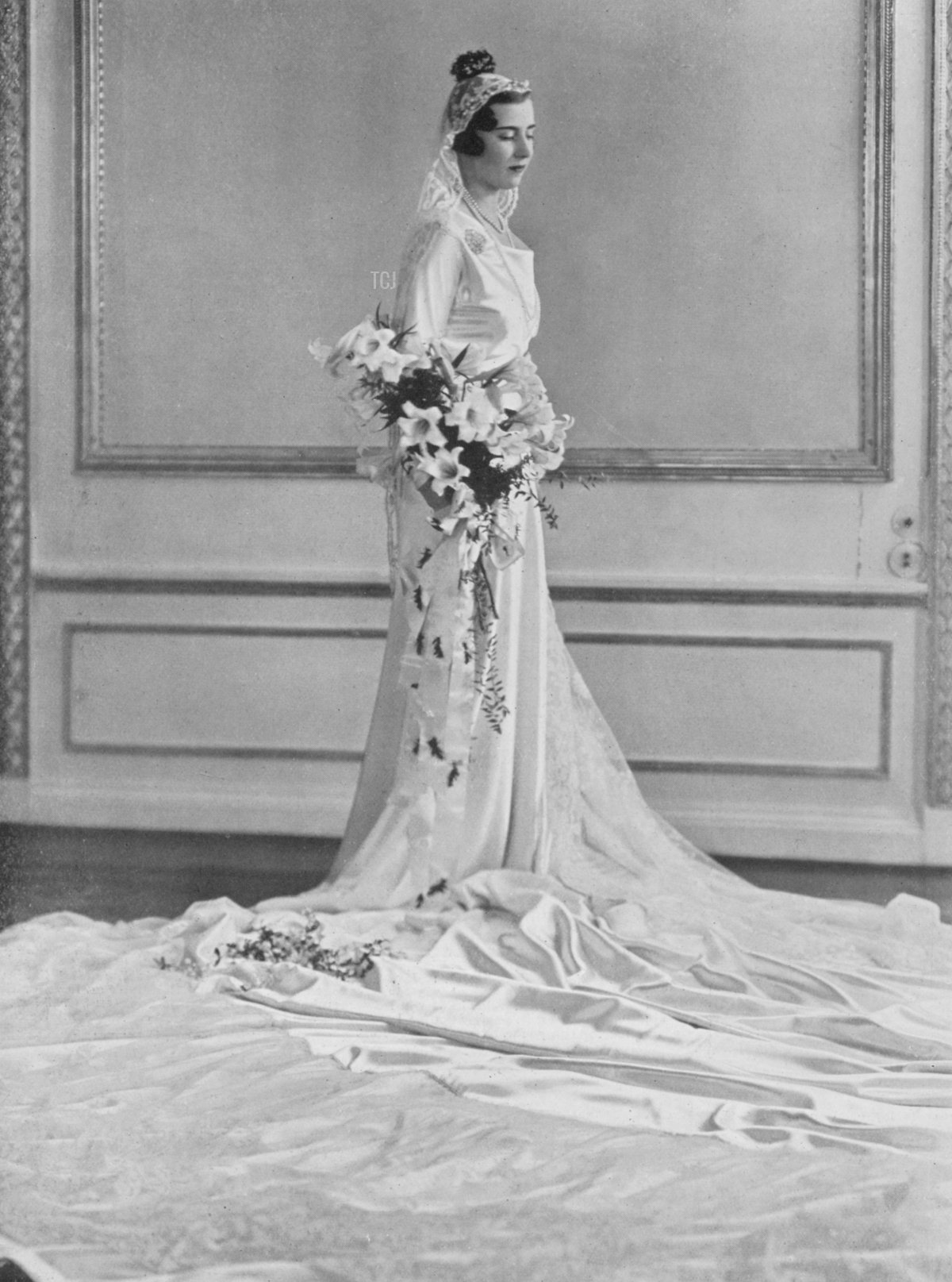 When Princess Ingrid married the future King Frederik IX of Denmark in May 1935, she followed in her mother’s footsteps, wearing the long pearl necklace with the ruby clasp over her bridal gown.