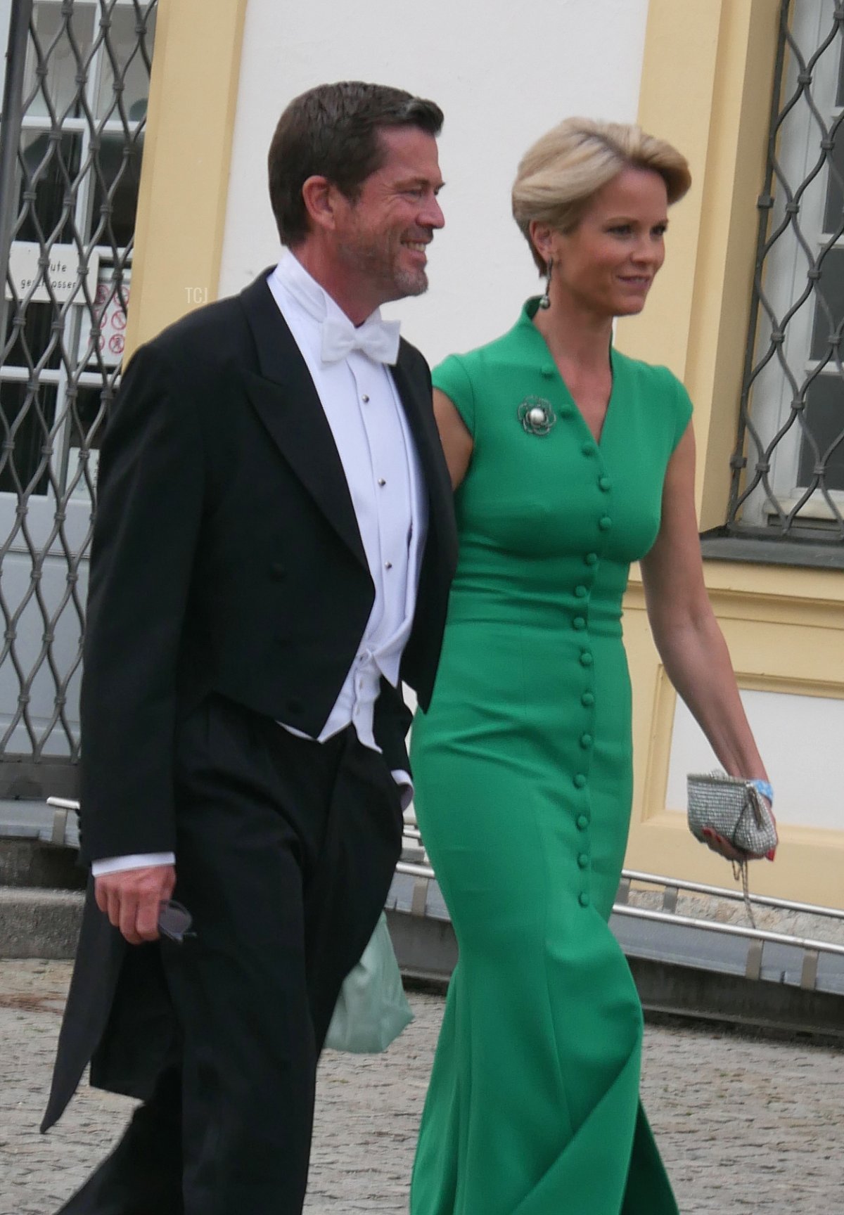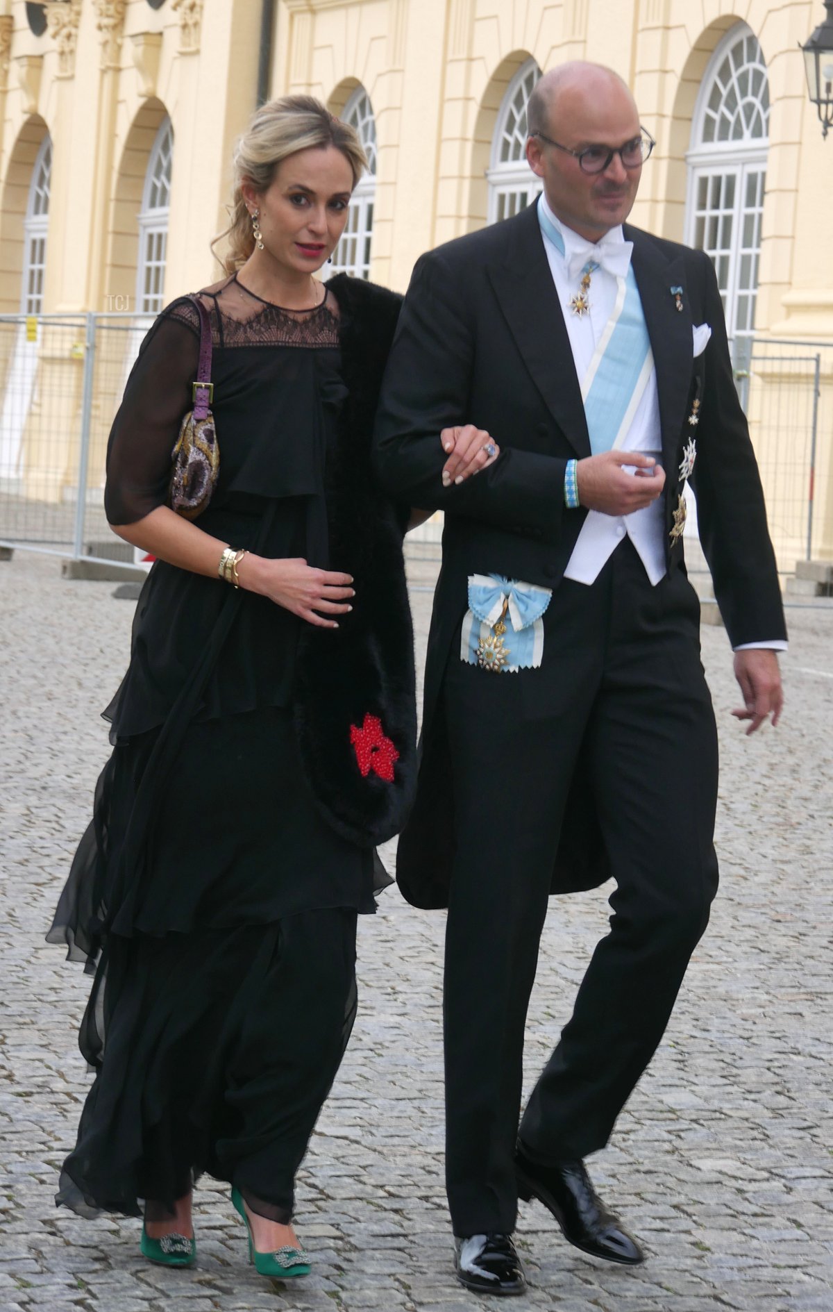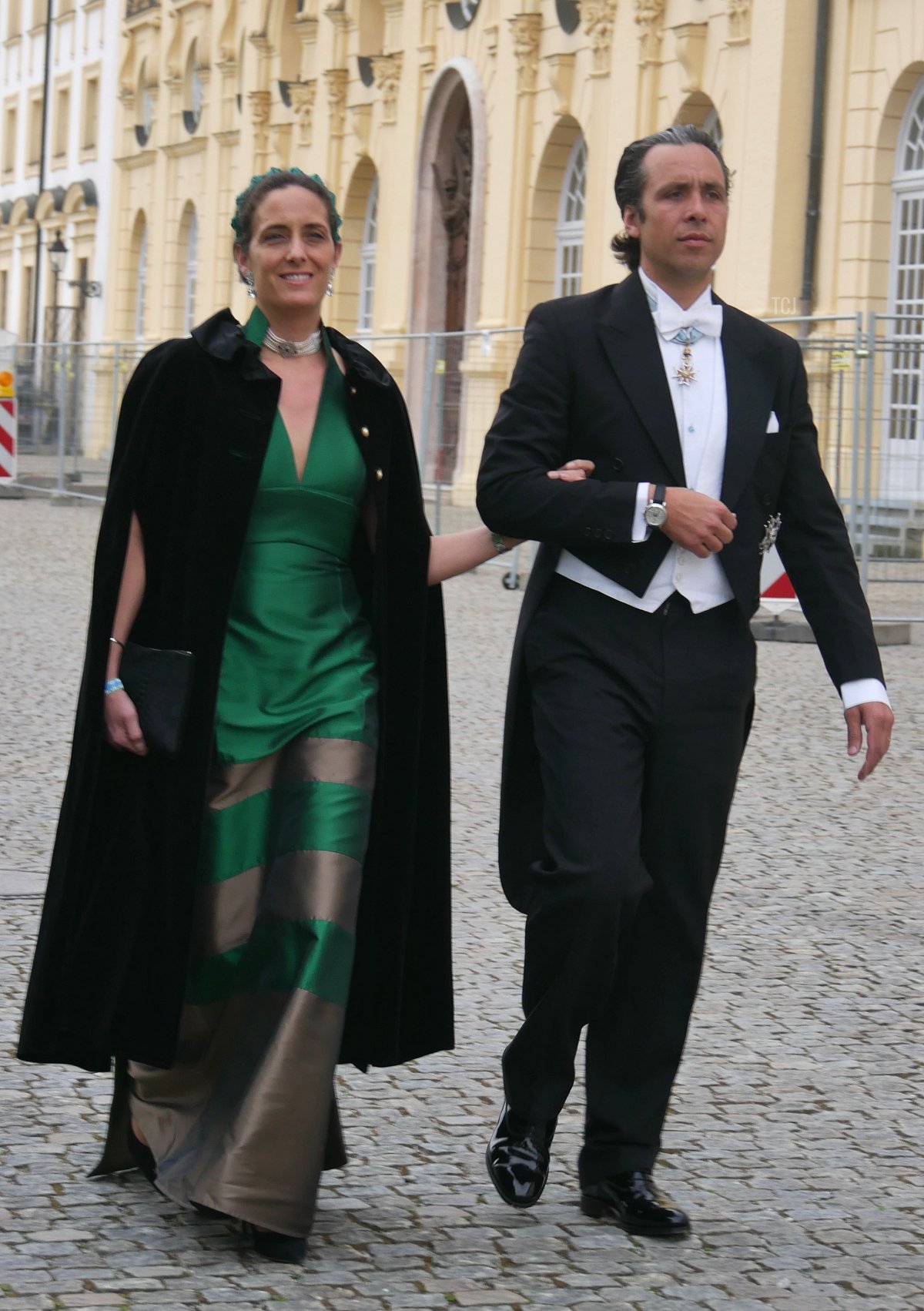 Hubertus and Alexandra’s son, Count Leopold Fugger von Babenhausen, attended the wedding gala with his wife, Countess Annina. She wore a green headband that coordinated with her gown and an antique pearl choker necklace.