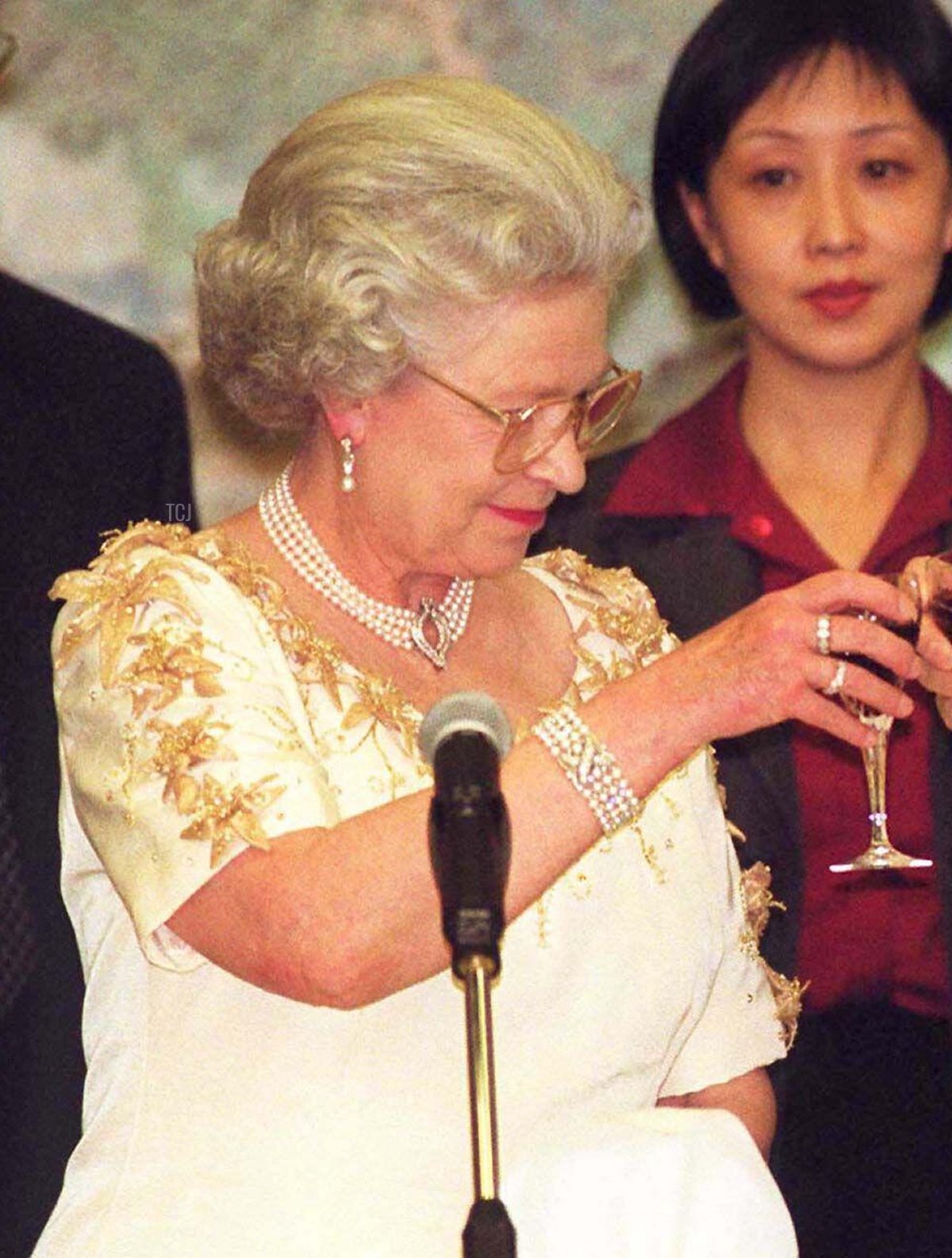 Queen Elizabeth II wore the earrings throughout her reign, sometimes pairing them with the necklace and bracelet from the Japanese Pearl Suite.