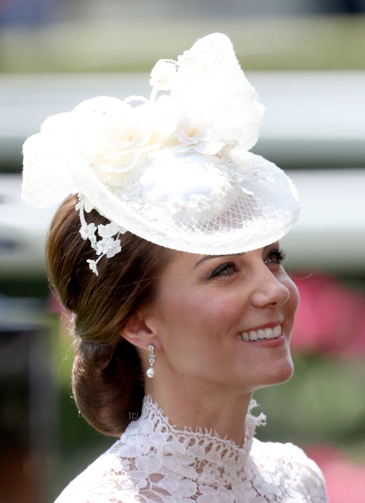 Kate has been the exclusive wearer of the earrings since 2016. Here, she wears them at Royal Ascot in June 2017.