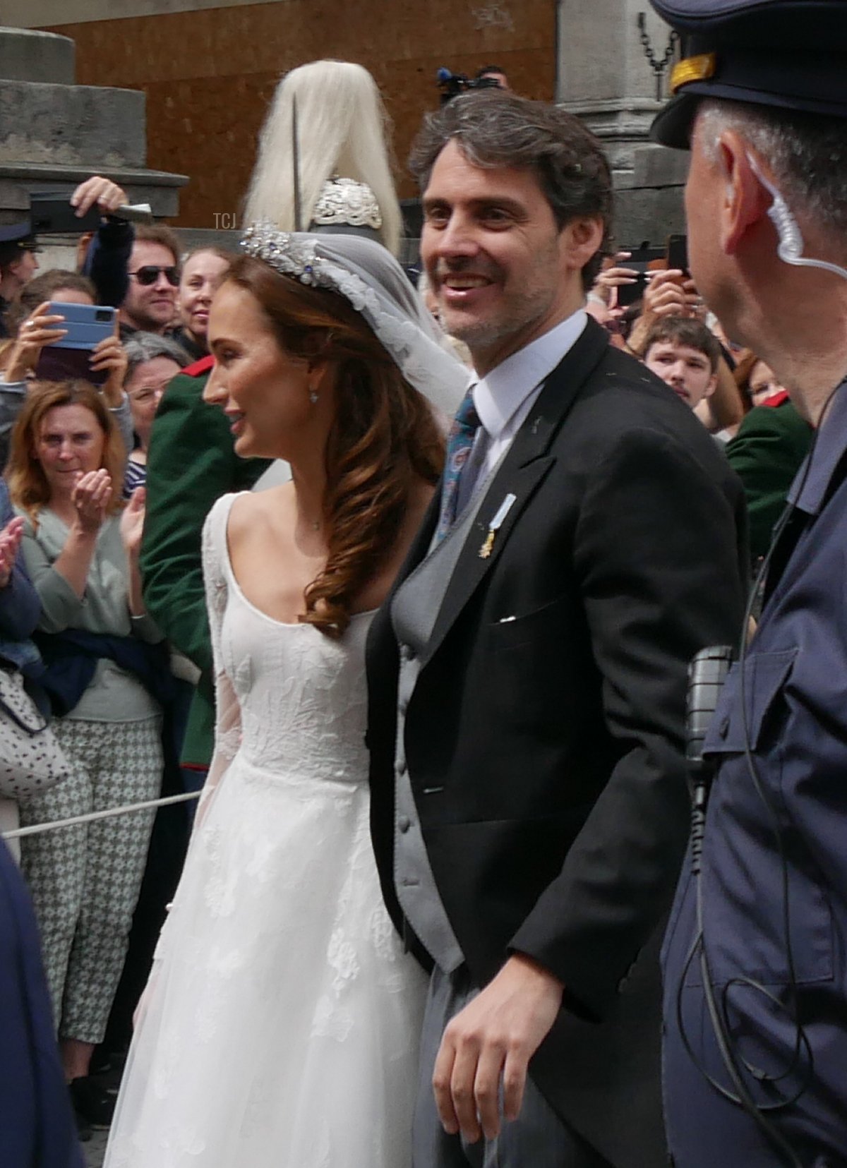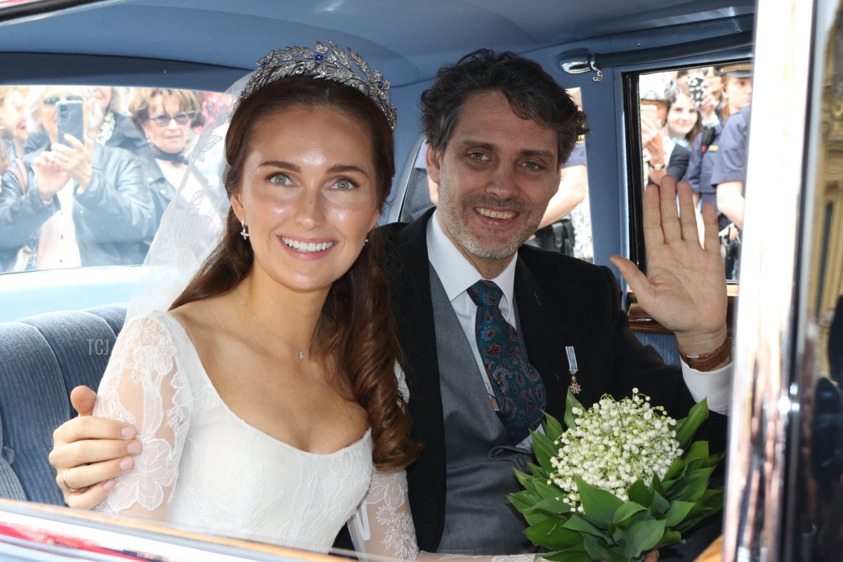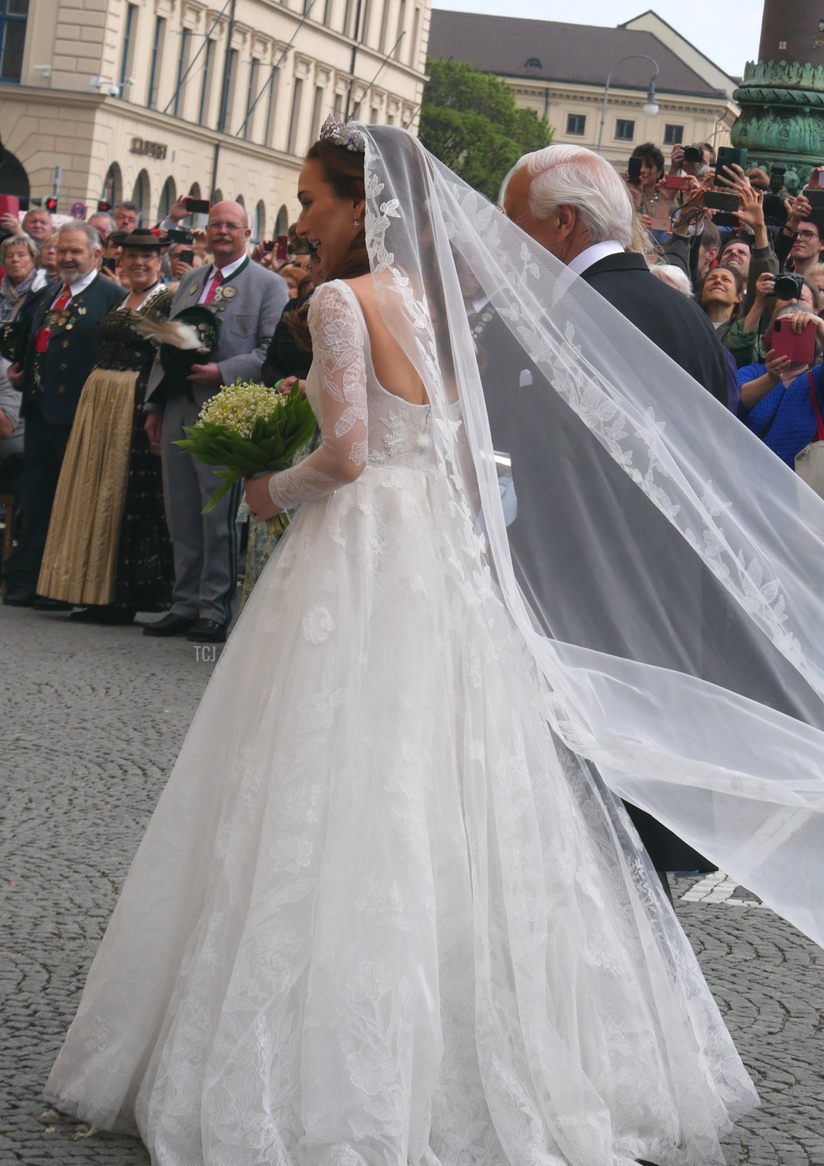 Prince Ludwig and Sophie-Alexandra Evekink were wed in a religious ceremony at Munich’s Theatine Church of St. Cajetan and Adelaide on Saturday, May 20. The baroque church is the resting place of many of Prince Ludwig’s ancestors, including King Maximilian I Joseph of Bavaria, Luitpold, Prince Regent of Bavaria, and Crown Prince Rupprecht of Bavaria. The bride made headlines by briefly fainting during the ceremony, but the groom caught her and she recovered quickly.