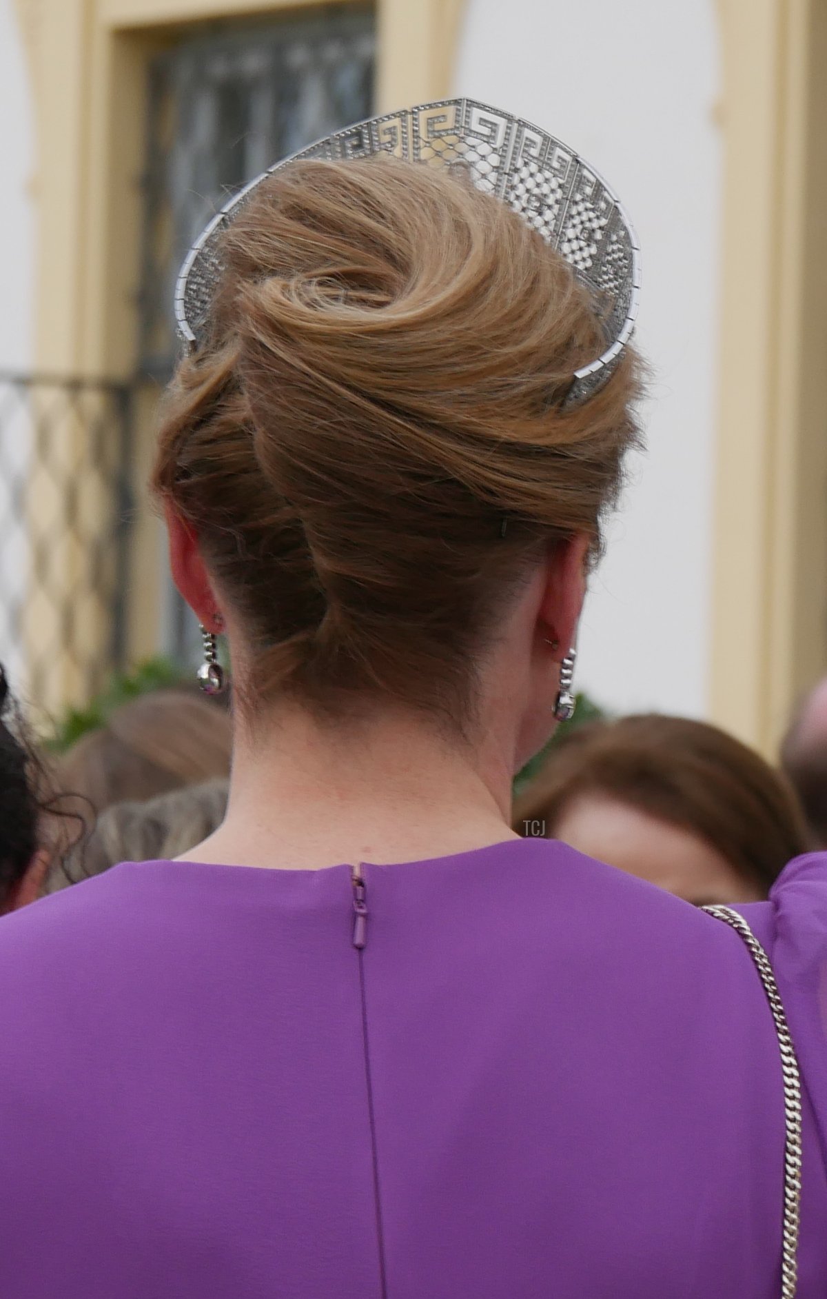 Princess Sophie brought out one of my very favorite royal tiaras for the occasion: the Prussian Meander Kokoshnik, made by Koch in 1905 for Crown Princess Cecilie of Germany.