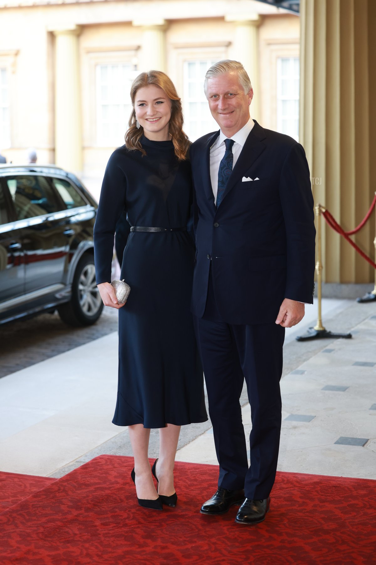 The Danish crown prince and crown princess were just two of the numerous royals, both reigning and non-reigning, who were in attendance at Friday’s palace reception. We’ll go through roughly alphabetically by nation. First up, then, is King Philippe of the Belgians, who attended with his elder daughter and heir, the Duchess of Brabant.