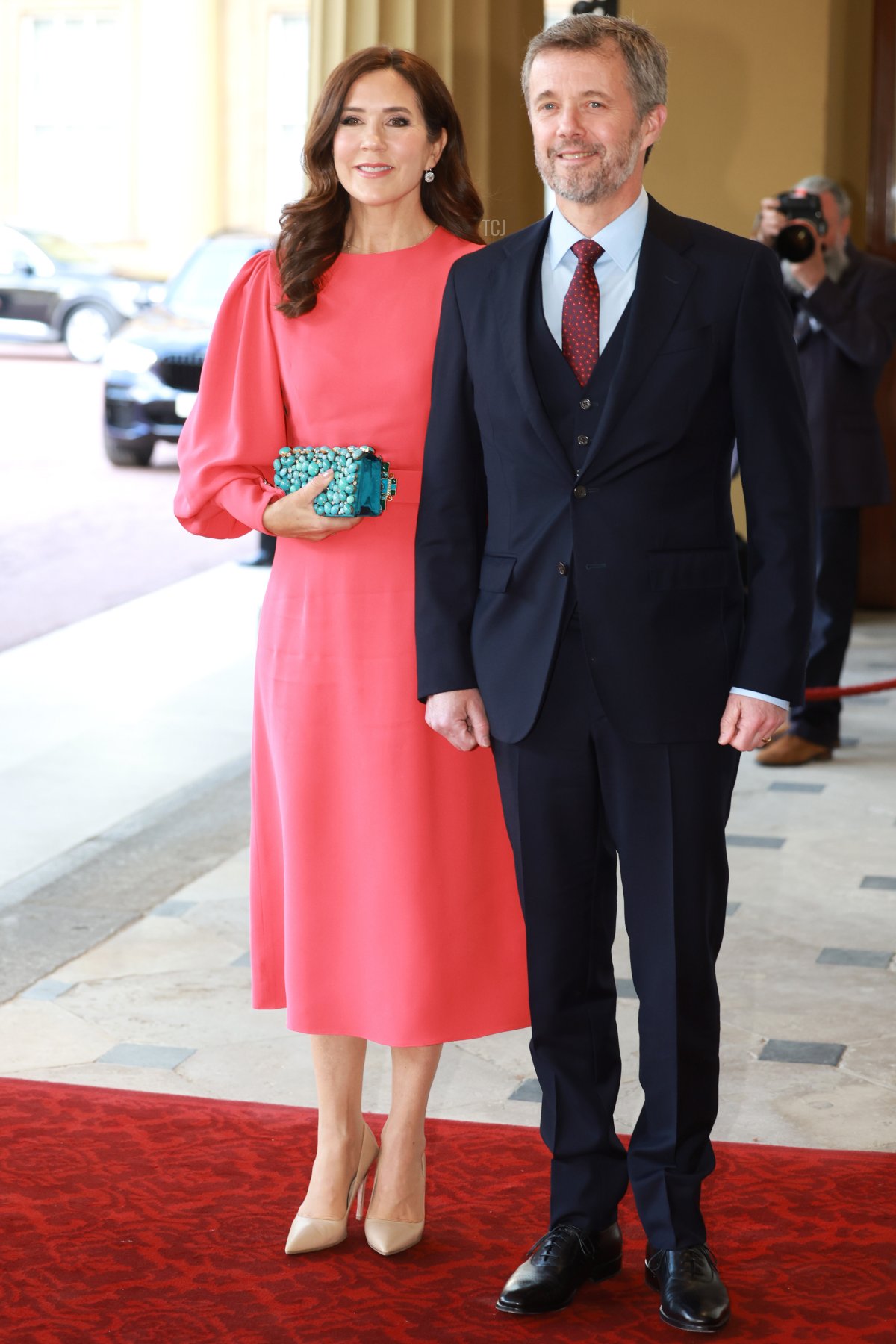 Crown Prince Frederik of Denmark arrived with Crown Princess Mary, who chose the same dress she wore for Princess Isabella’s confirmation last May.