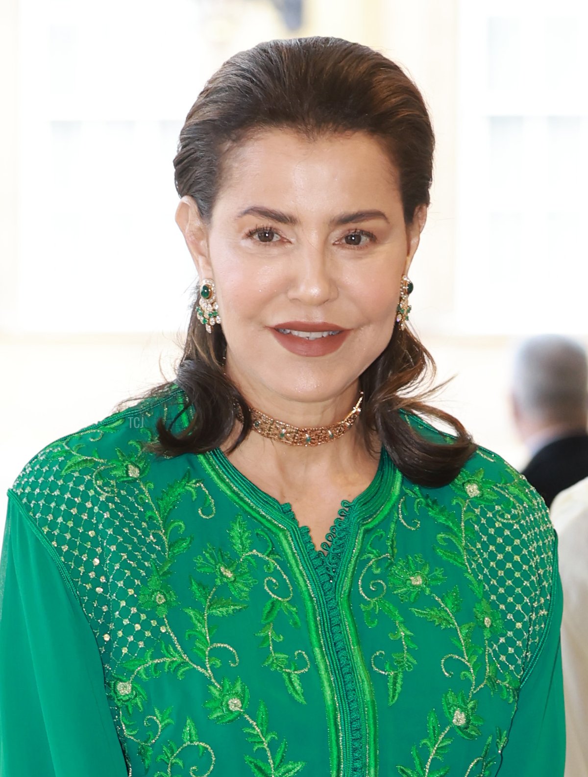 Representing her brother, the King of Morocco, Princess Lalla Meryem arrived wearing a gorgeous green embroidered kaftan.