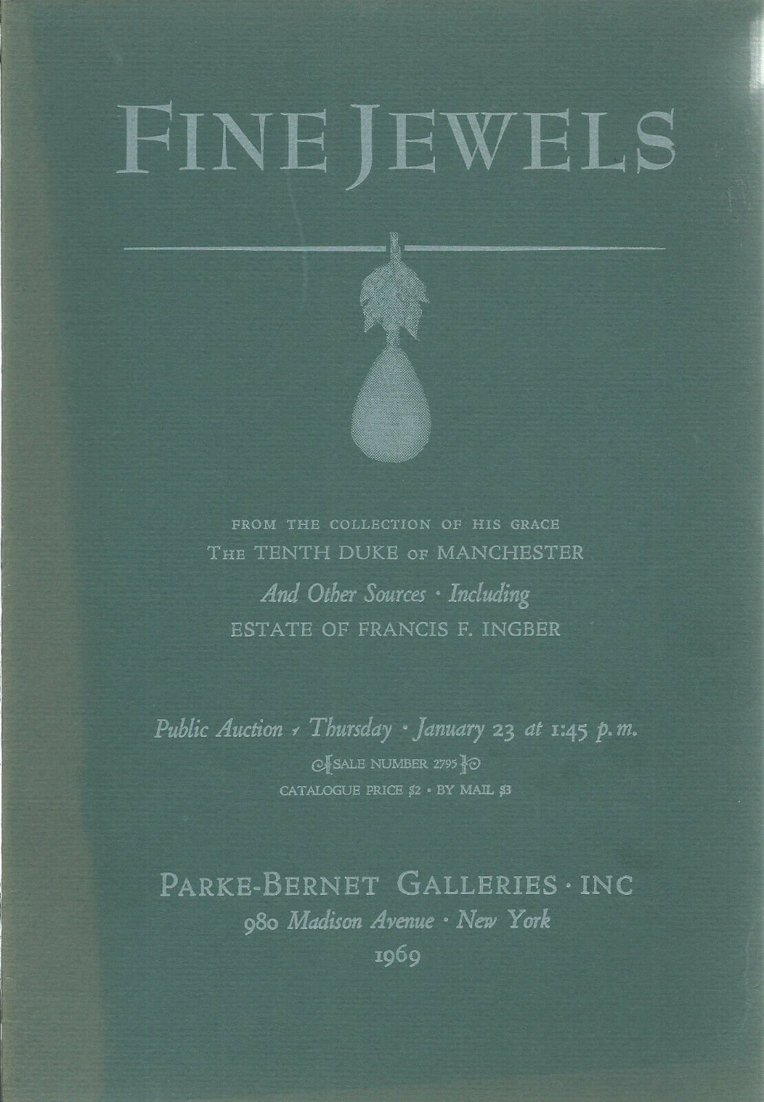 On January 23, 1969, at a quarter to two in the afternoon, the auction room at the Parke-Bernet Galleries on Madison Avenue in New York was buzzing with activity. Ward Landrigan, the young head of jewelry for the Sotheby’s branch, stood by as the auctioneer prepared to open bidding on lots from a special fine jewels sale. The auction catalogue headline advertised pieces from the collection of the 10th Duke of Manchester (selling off, as usual, more items from the family holdings) but it was another jewel that was pictured on the catalogue’s cover—an item that had caused more than a little controversy in the days before the sale.
