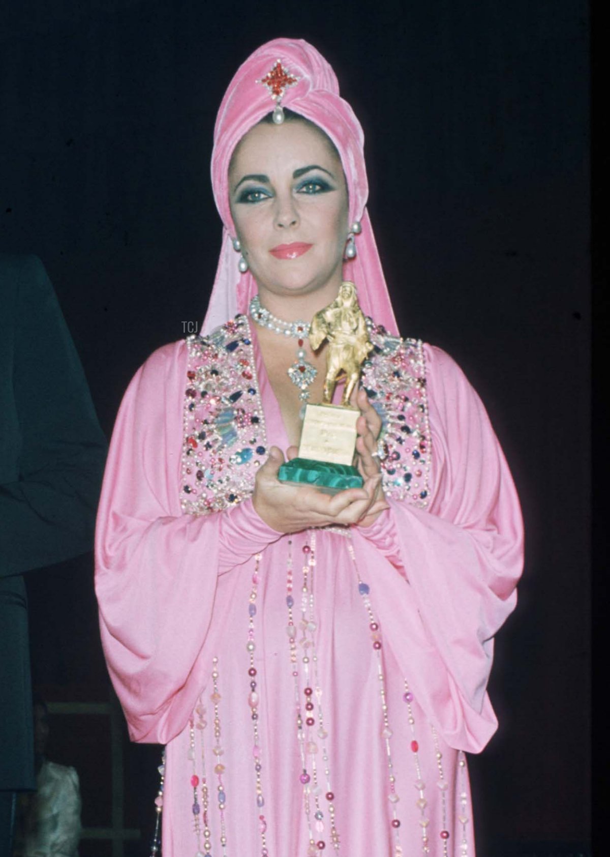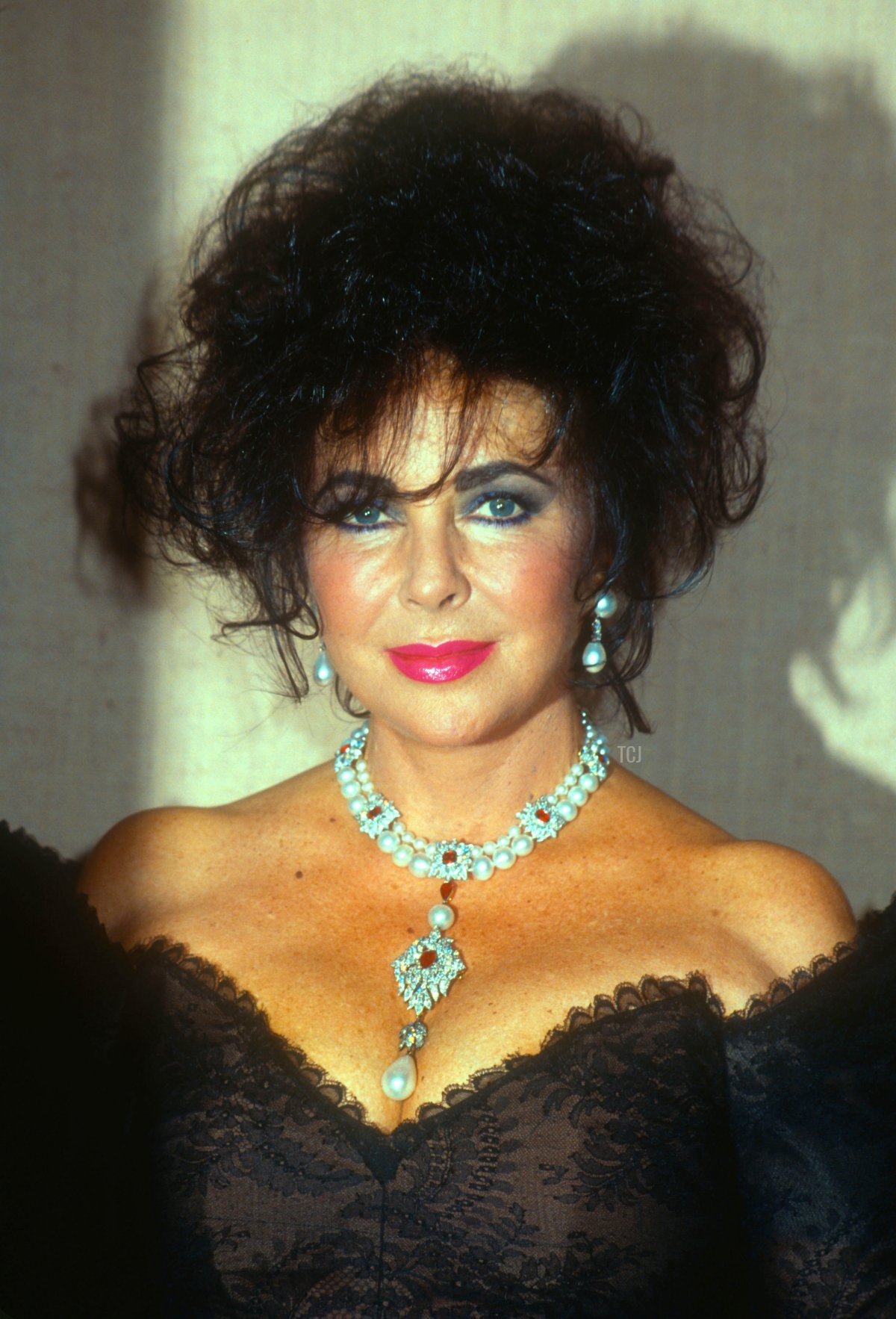 She continued to wear the Cartier necklace with La Peregrina for years afterward, even after her divorce (and remarriage, and divorce again) from Burton. She wears the necklace above in January 1992 to receive a humanitarian award in Beverly Hills.