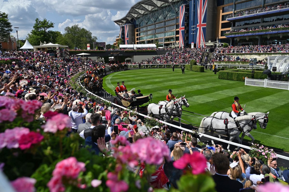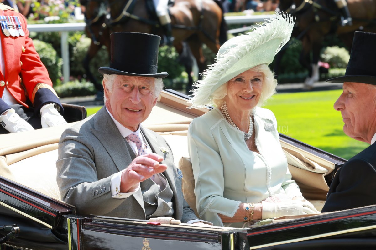 For the third day in a row, King Charles III and Queen Camilla rode in the first carriage in the traditional procession for their arrival at Ascot Racecourse.