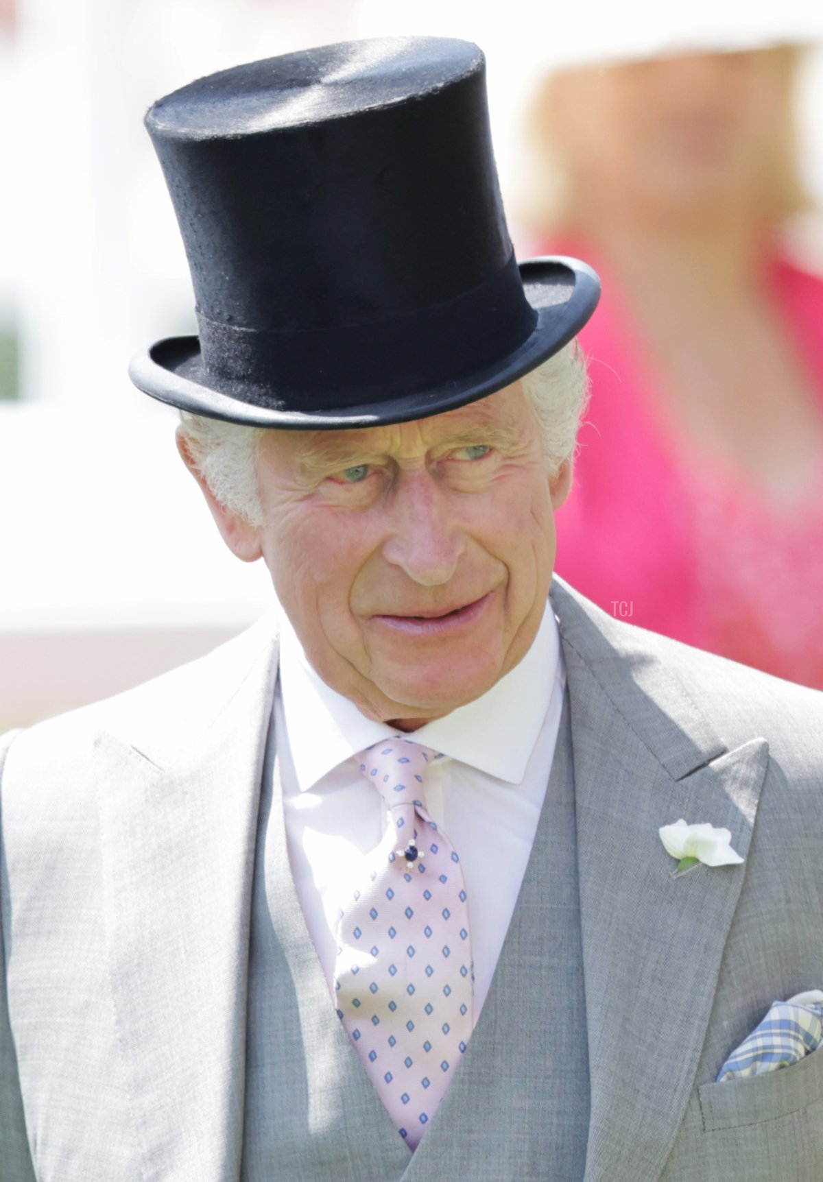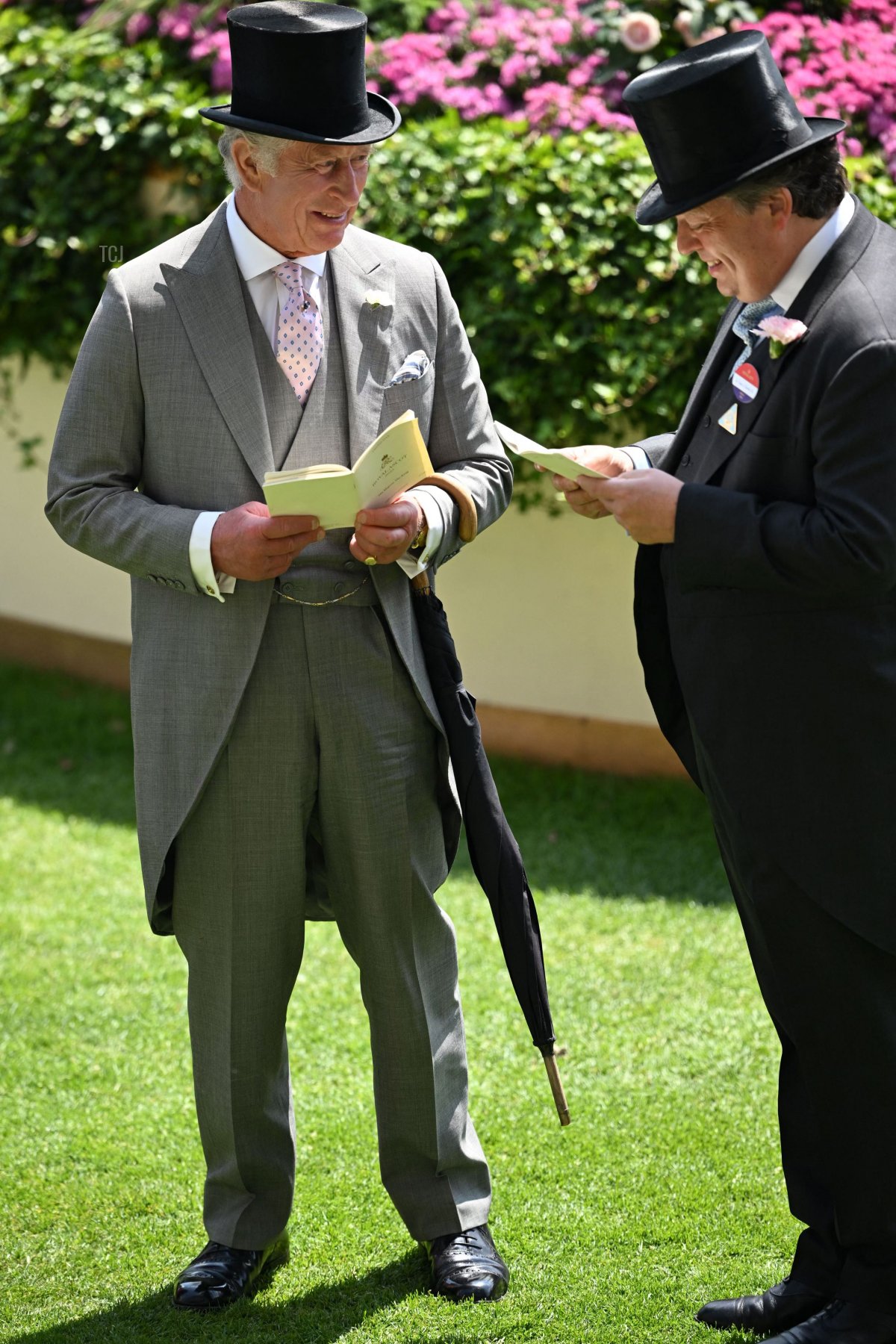 The King—pictured here speaking with Sir Francis Brooke, the Chairman of Ascot Authority (Holdings) Limited—wore gray for Thursday’s trip to the races.