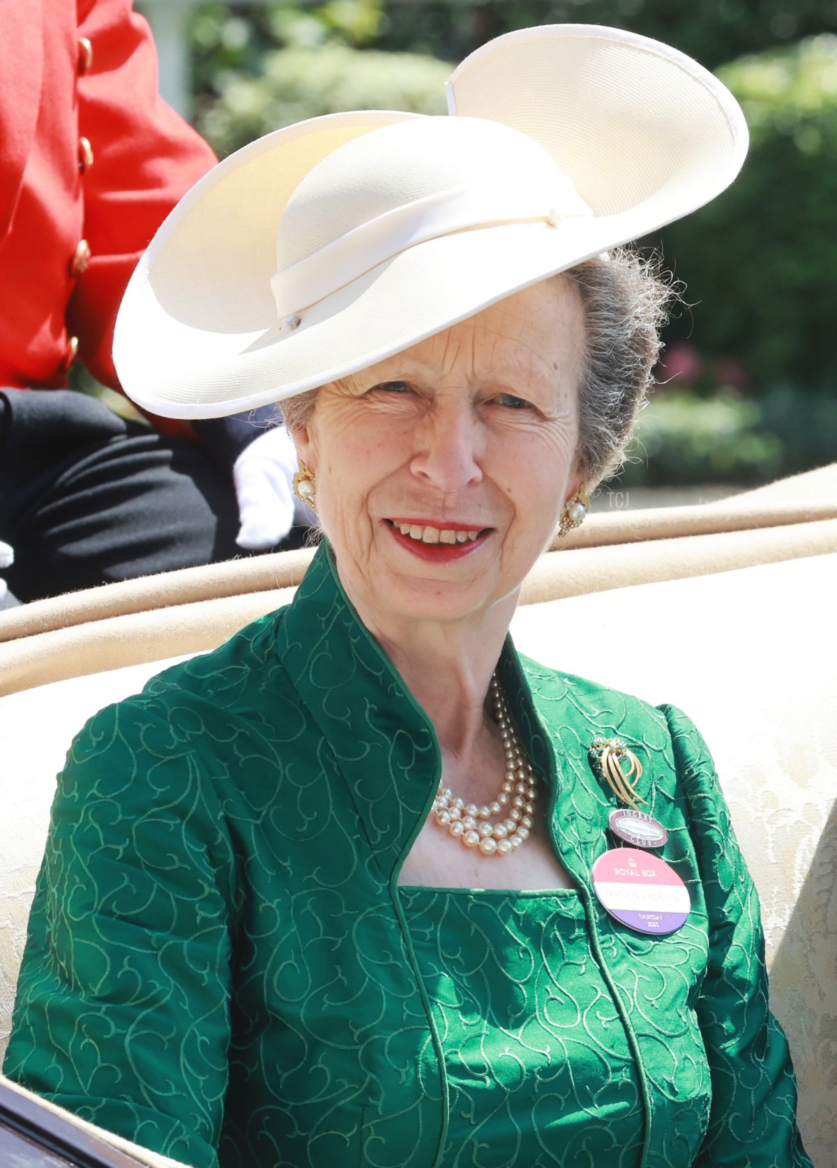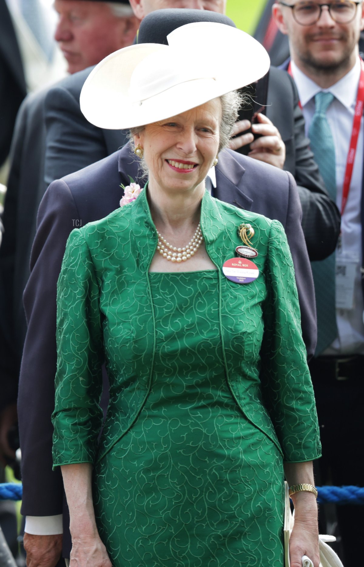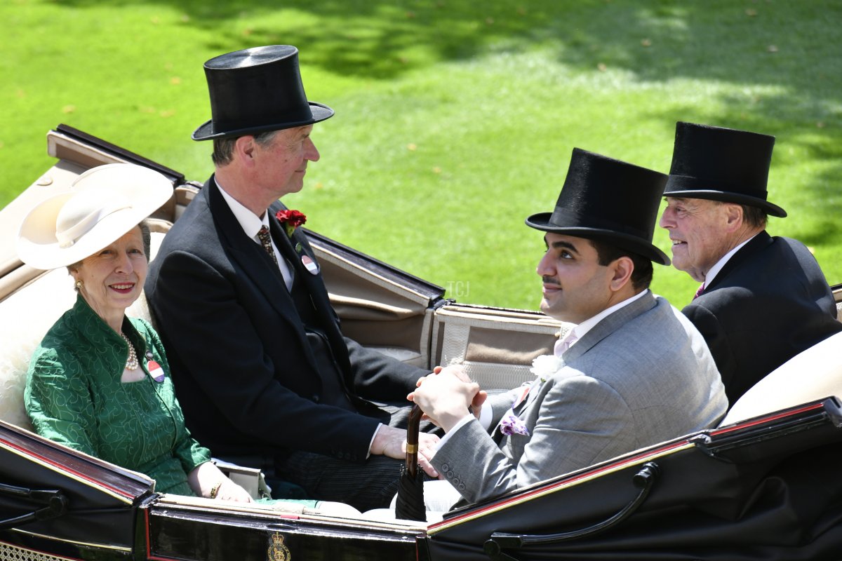 And speaking of the late Queen’s jewelry! The Princess Royal was in carriage number two on Thursday, riding beside her husband, Vice-Admiral Sir Timothy Laurence. Joining them in the carriage were Sheikh Hamad bin Abdullah Al Thani (the CEO of QIPCO, a major commercial partner of Royal Ascot) and Lord Soames of Fletching (who we also saw attending the races on Wednesday).