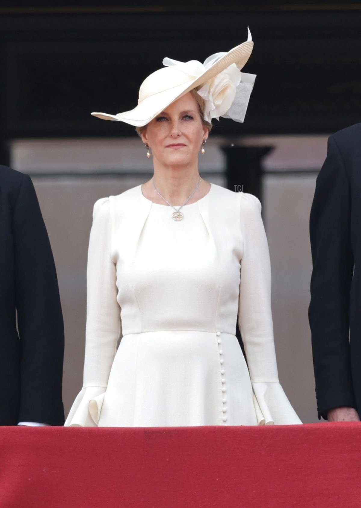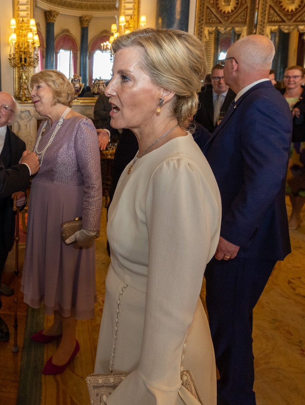 Sophie also wore the same earring/necklace combination for a garden party at Buckingham Palace a few days before the coronation.