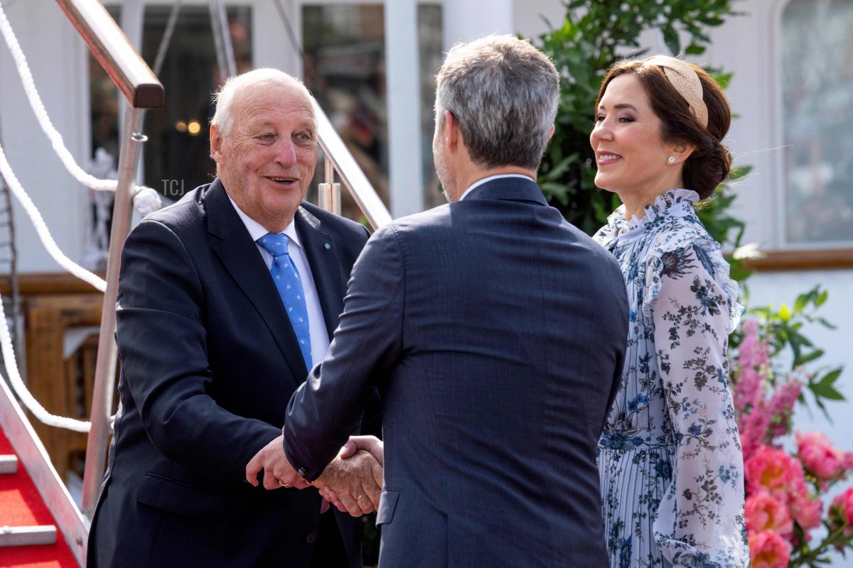 Crown Prince Frederik and Crown Princess Mary joined King Harald and Queen Sonja aboard the royal yacht for the journey to Aarhus the following day.