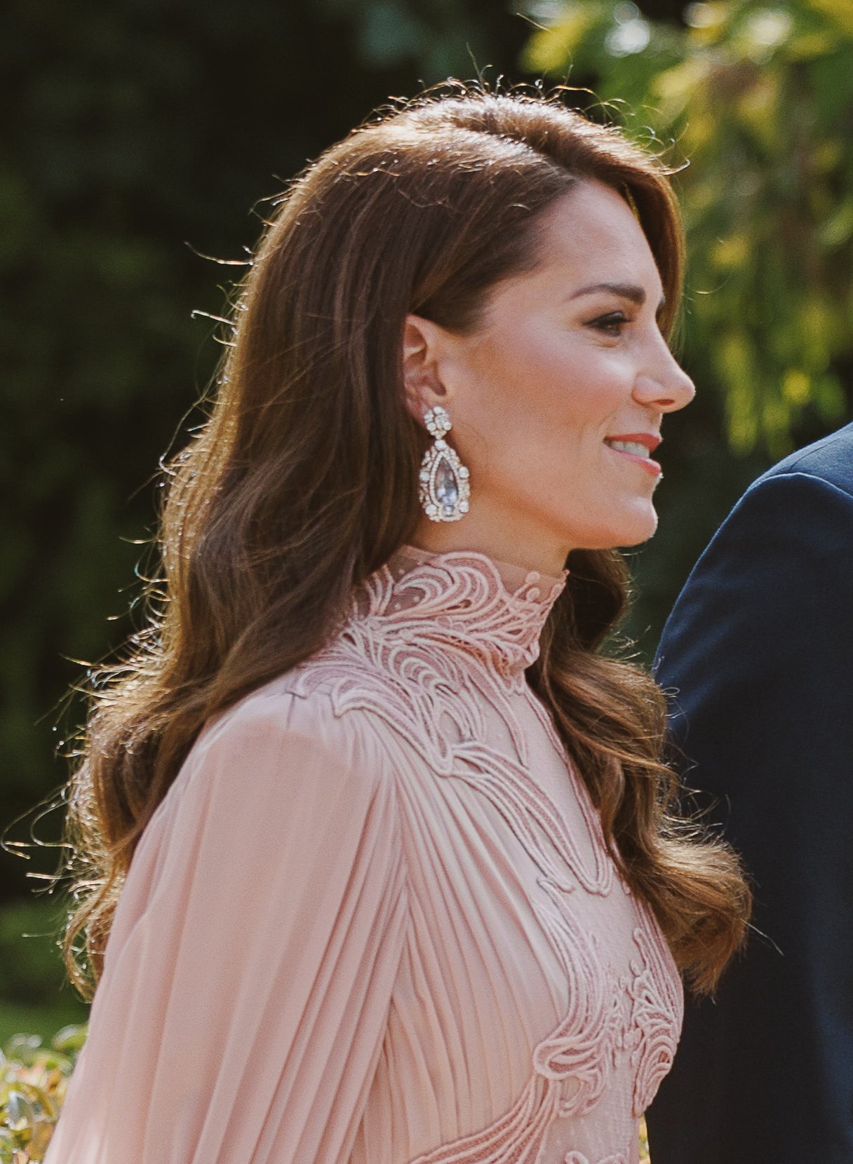 Kate accessorized with a pair of pink-hued statement earrings that have been in her jewelry box for more than a decade. She wore them for a charity fundraising gala at St. James’s Palace in 2011, and in 2017, she wore them for a glamorous appearance at the BAFTAs.