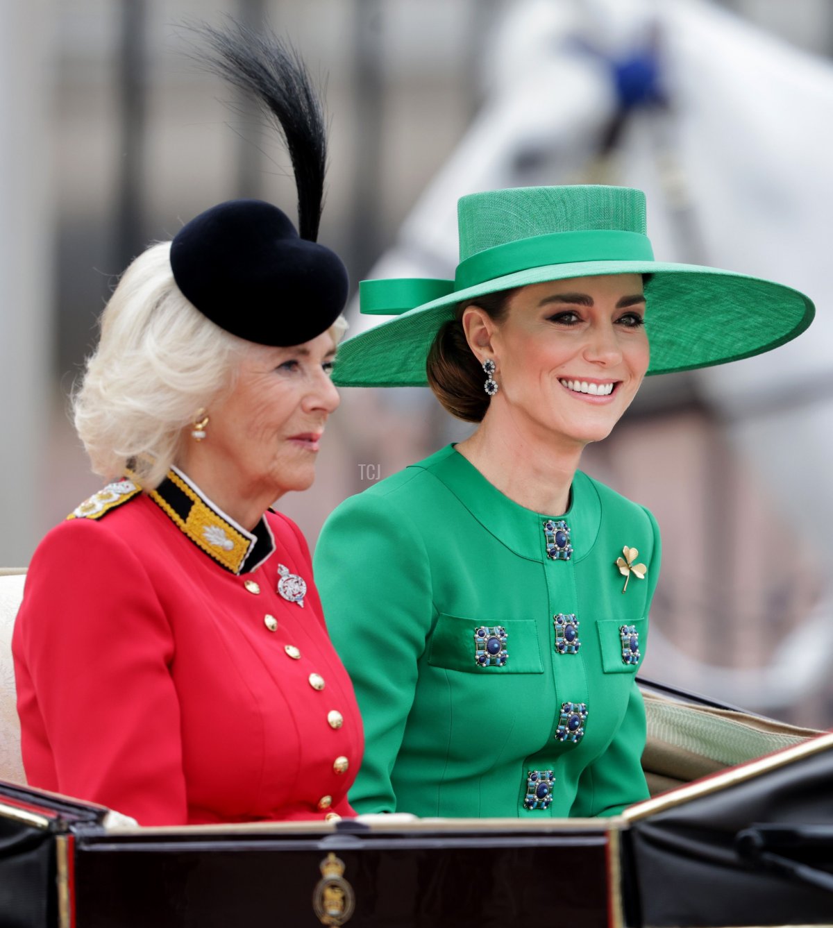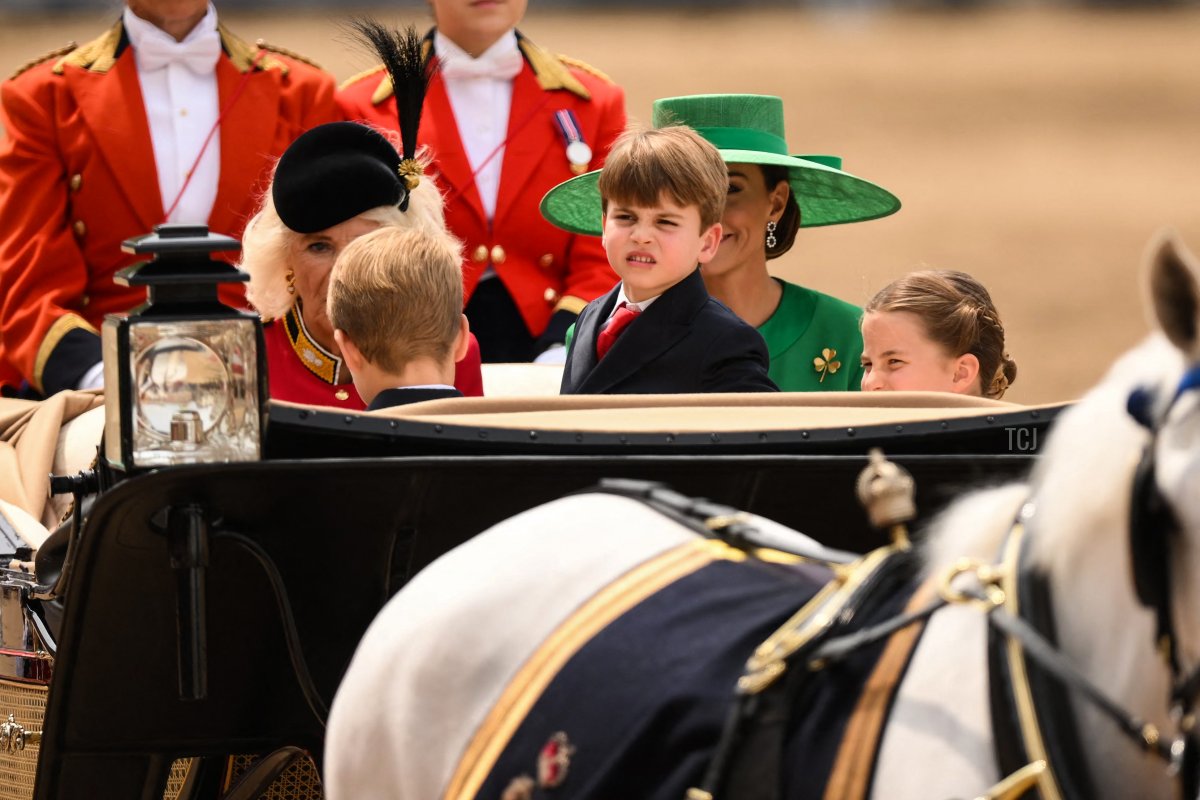 Princess Catherine and her three children joined Queen Camilla in a carriage for the procession from Buckingham Palace to Horse Guards Parade for Trooping the Colour this morning.