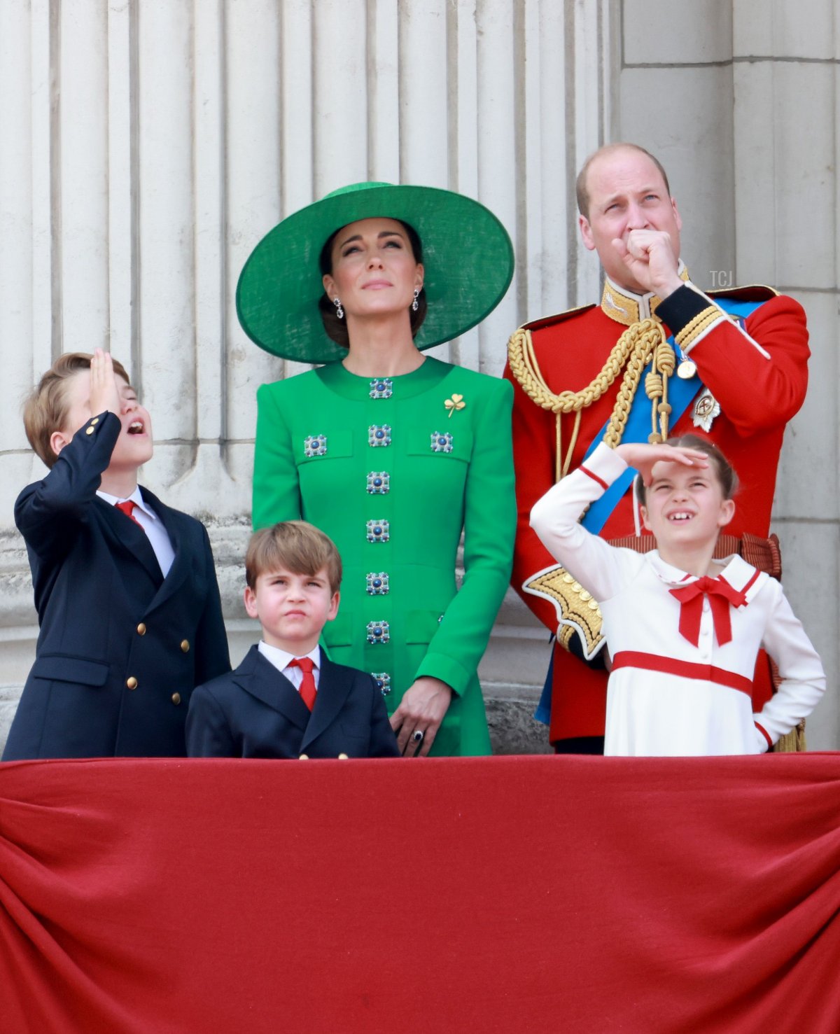 The family was reunited afterward on the balcony at Buckingham Palace to watch the traditional RAF fly-past.