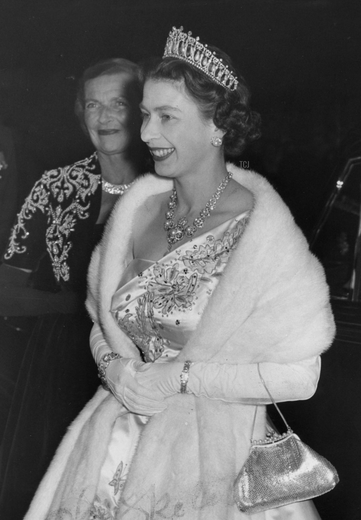Eventually, Mary removed the pearls from the top of her lover’s knot tiara. (The lack of the top row of pearls is one of the easiest ways to tell the two tiaras apart. Queen Mary’s Lover’s Knot Tiara also has a row of diamonds at the base, while the Cambridge Lover’s Knot Tiara has a row of pearls.) The smaller version of Mary’s lover’s knot tiara was inherited in 1953 by Mary’s granddaughter, Queen Elizabeth II, who wore it occasionally in the early years of her reign.