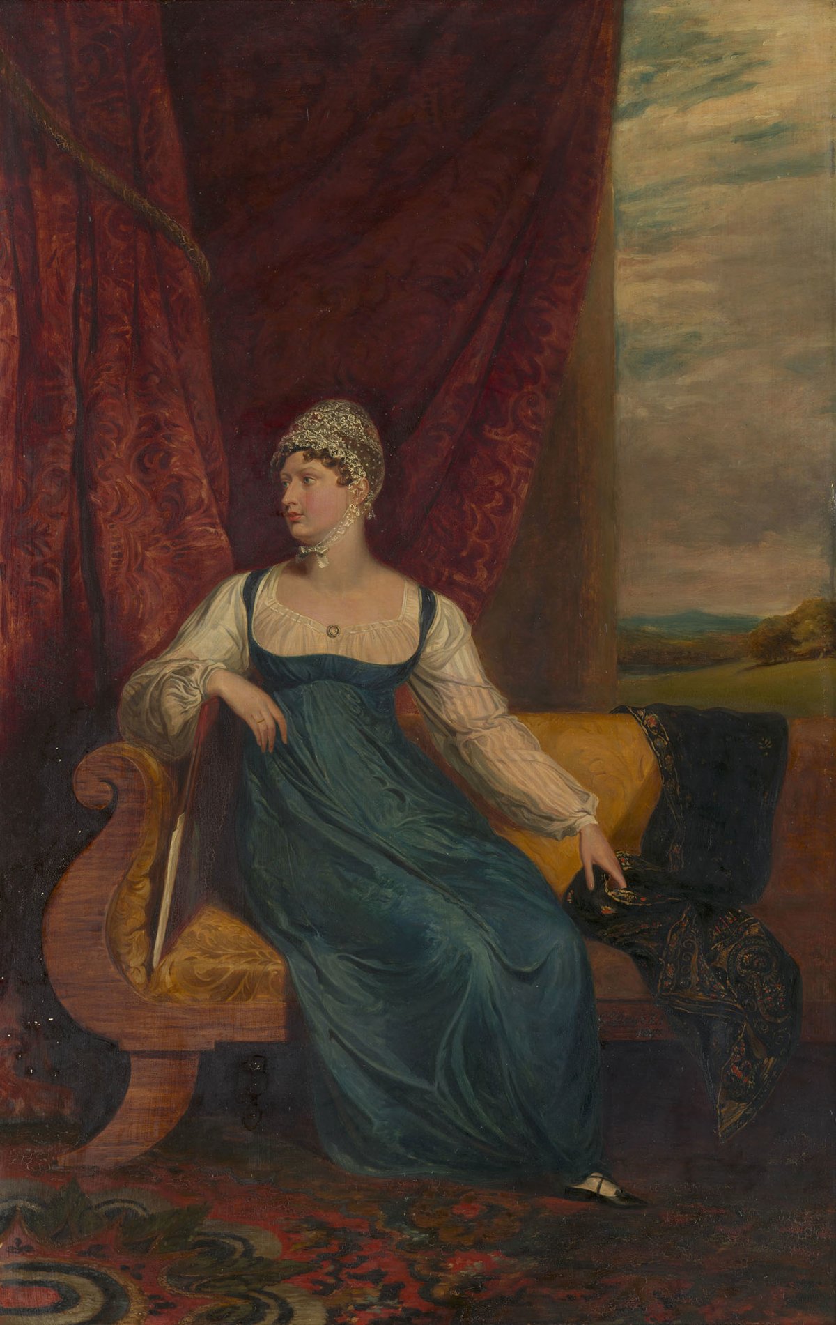At the time of her death, Charlotte was attended by several servants and a nurse, as well as by Lady John Thynne (one of her Ladies of the Bedchamber) and Mrs. Alicia Campbell, the much-loved governess who had become like a surrogate mother to Charlotte during her childhood. Lady John Thynne, née Mary Anne Master, was described in contemporary newspapers as someone to whom Charlotte “was so much attached.” Her husband became the 3rd Baron Carteret in 1838, and Mary Anne was known from then until her death as “Lady Carteret.” She’s the “Mary Anne John Thynne” mentioned on the brooch’s box, the person who was given the emerald and diamond brooch by Prince Leopold as a token of remembrance after Charlotte’s death.