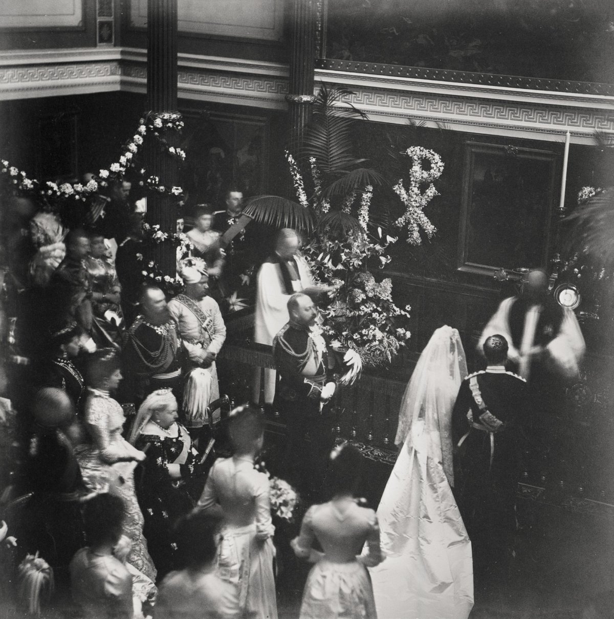 The skies had begun to clear when Princess Louise left Marlborough House in a glass coach to travel to her wedding. She was accompanied by her father, the Prince of Wales, and smiled and waved happily to the gathered crowds. Inside the palace, she glided down the aisle of the chapel on her father’s arm, with the wedding march from Wagner’s Lohengrin sounding from the organ as she approached her groom, Alexander Duff, the 6th Earl of Fife.