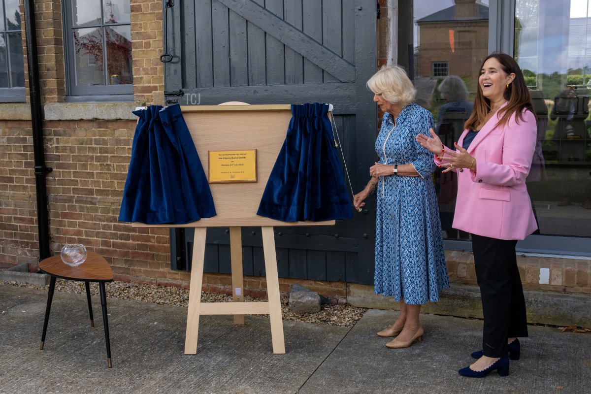 Next, Queen Camilla headed to the Holkham Estate in Wells-Next-The-Sea for a stop at the design studio of jeweler Monica Vinader.
