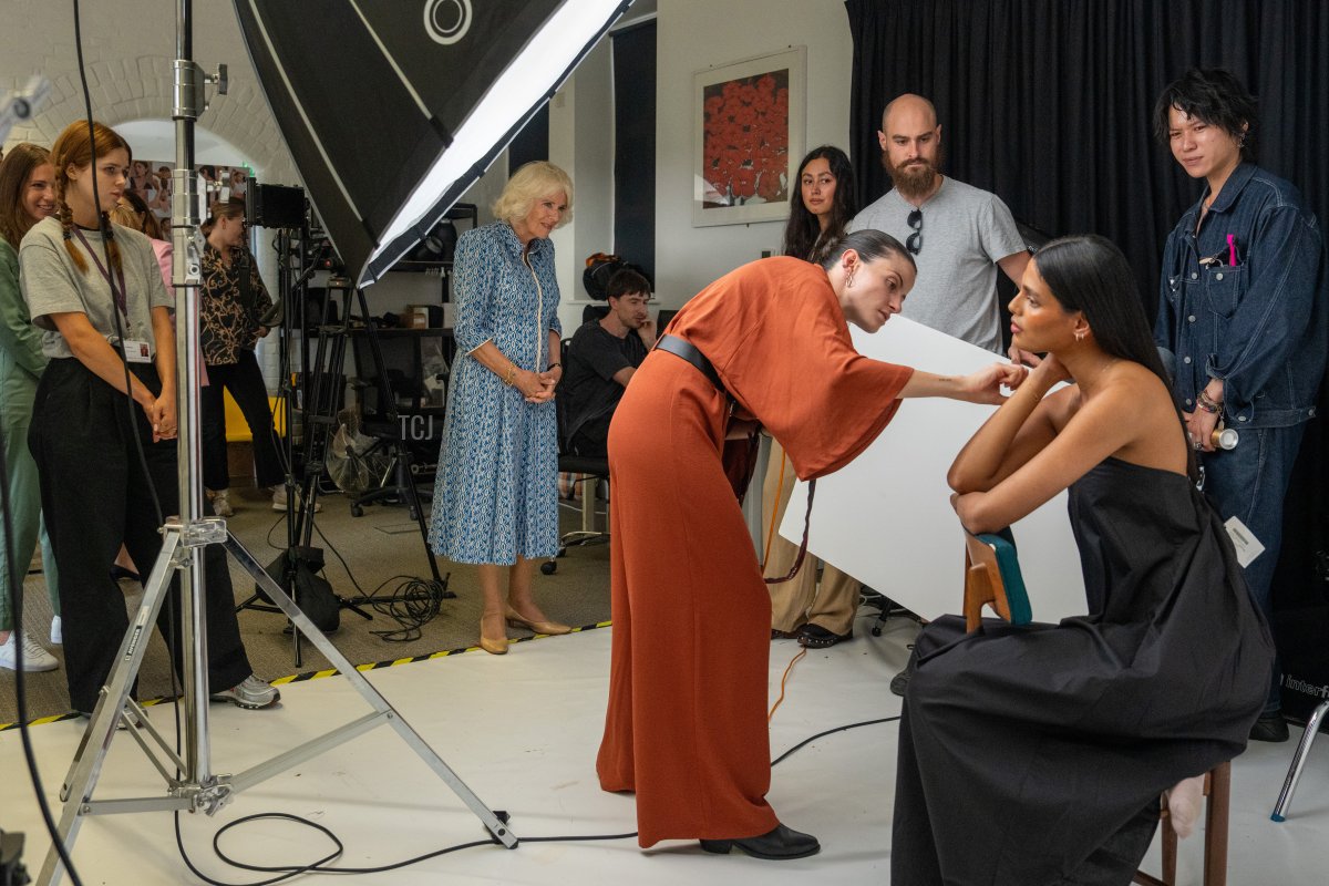 Camilla’s tour of the premises included a stop in the photography studio where a model was posing with pieces from Vinader’s line.