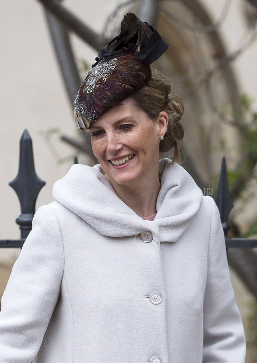 She wore a pair of earrings she’s loved over the past year: pearl drops with studs set with sapphires, diamonds, and rubies. The earrings come from the collection of the late Queen Elizabeth II.