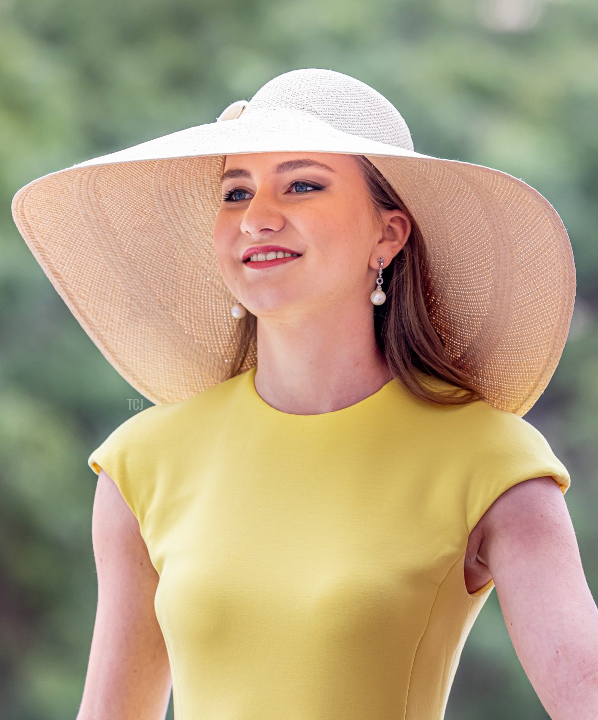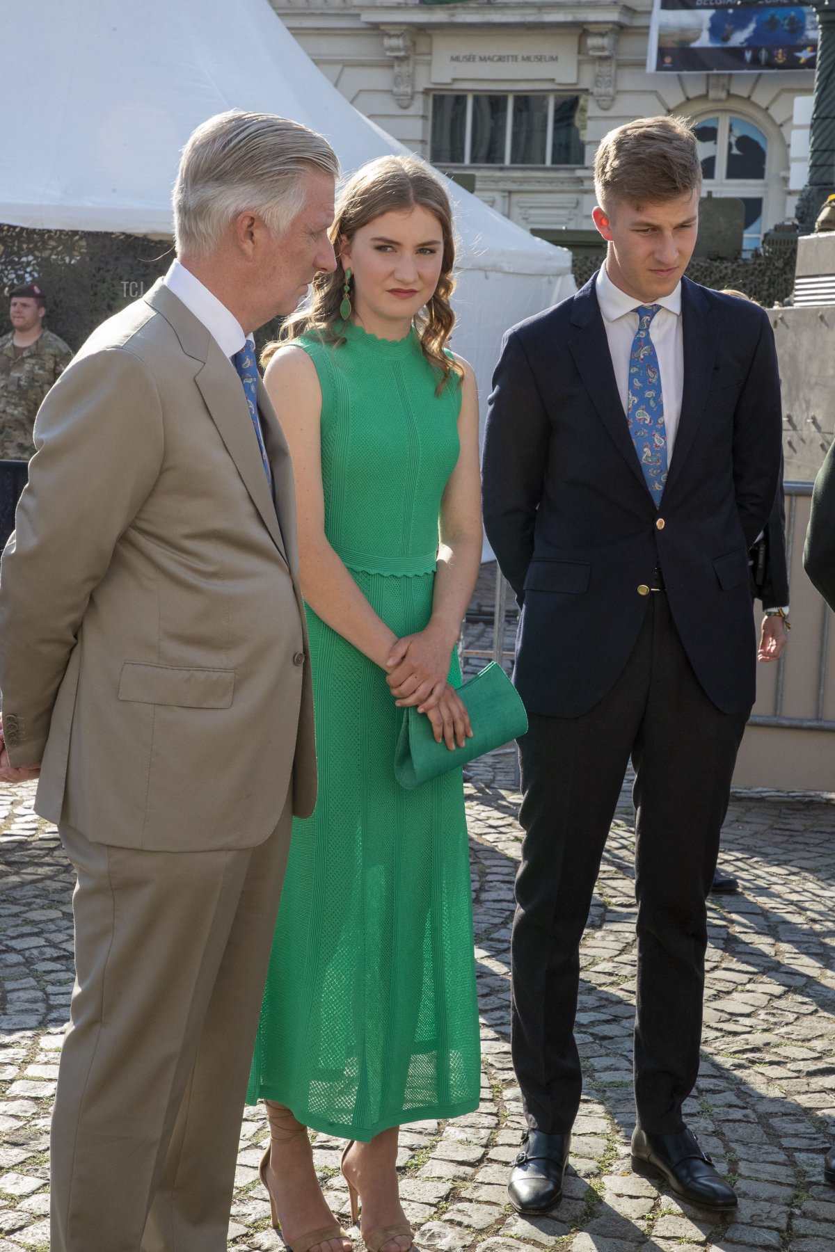 King Philippe and Queen Mathilde were joined by all four of their children this year: the Duchess of Brabant (21), Prince Gabriel (19), Prince Emmanuel (17), and Princess Eleonore (15).