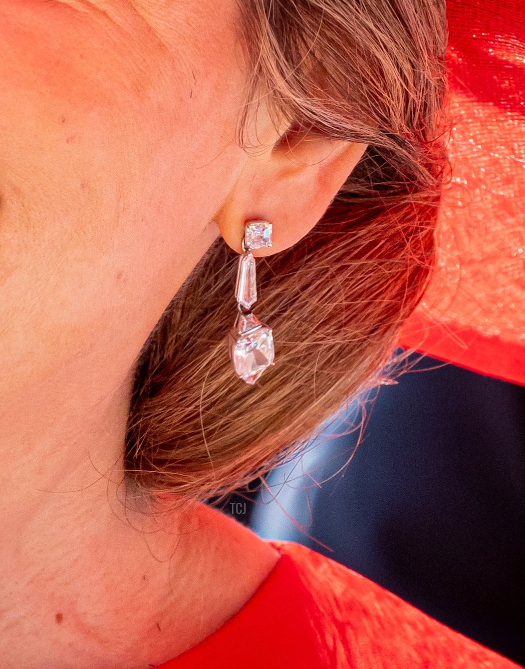 Here’s a closer look at the earrings, which feature several different geometric cuts. She wears the earrings often, including a recent appearance at the Queen Elizabeth Voice Competition.