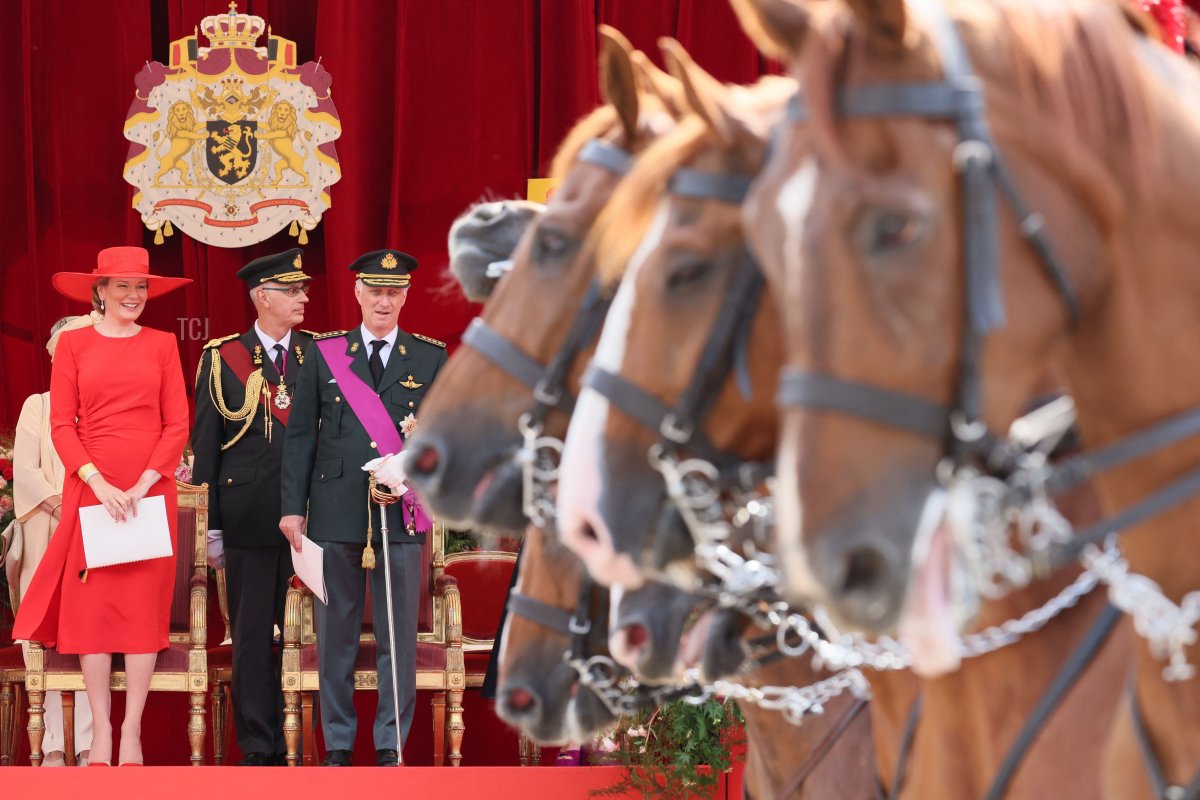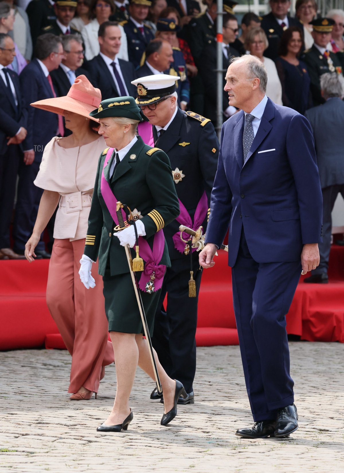 Several more members of the royal family were also in attendance. Princess Astrid, who attended with Prince Lorenz, wore a military uniform, her usual tradition at this event. Prince Laurent was with Princess Claire, who wore different shades of pink.