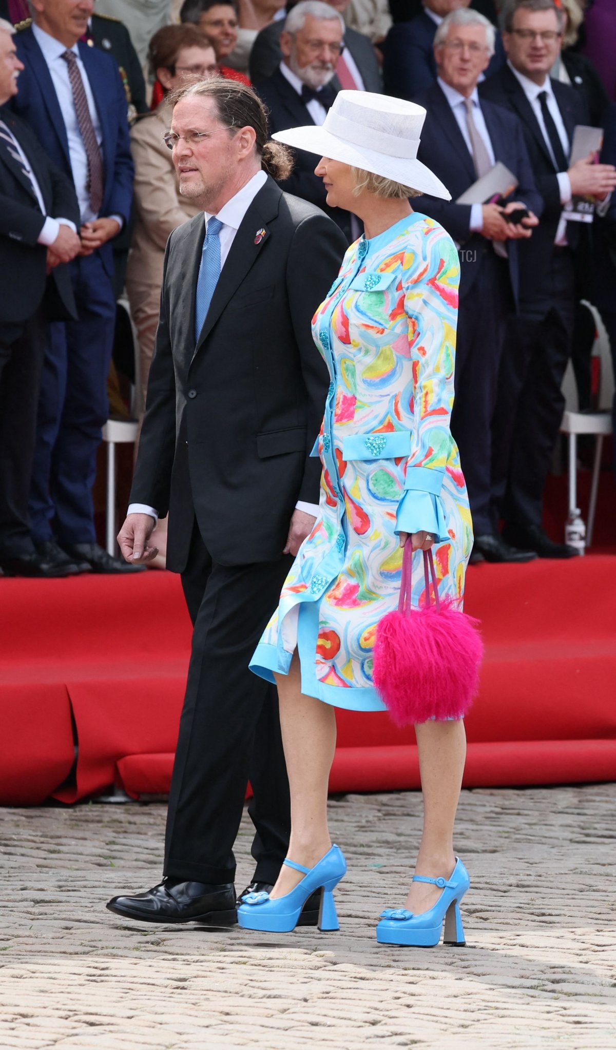 Also present were Princess Delphine, King Albert II’s daughter, and her spouse, Jim O’Hare.