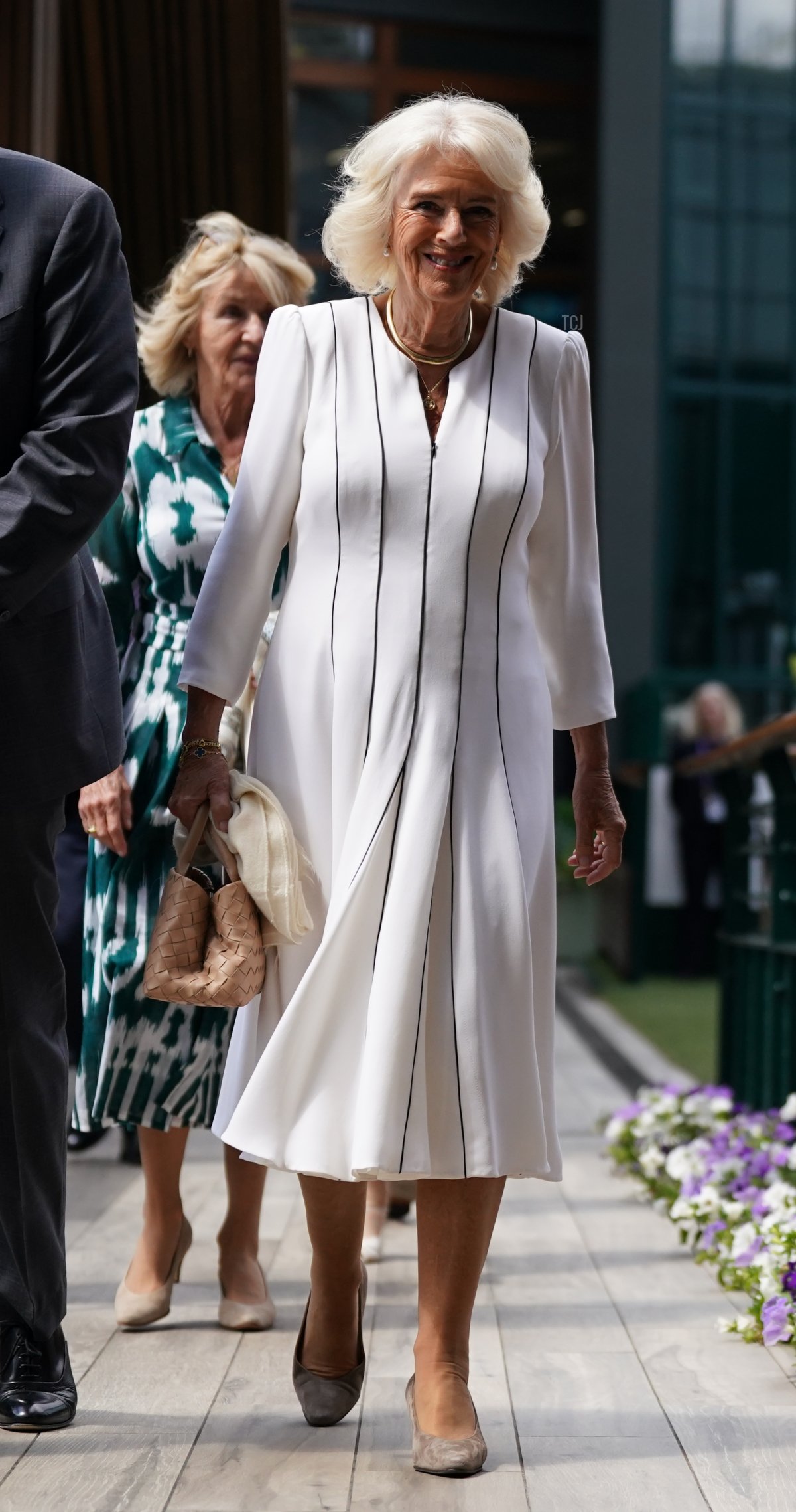Camilla kept cool in tennis-appropriate white for her visit to the club.