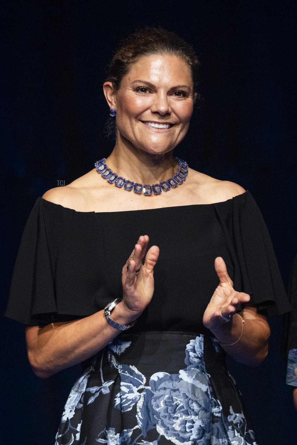 Last week, Crown Princess Victoria celebrated new innovations in Stockholm wearing a statement-making suite of modern blue jewelry.