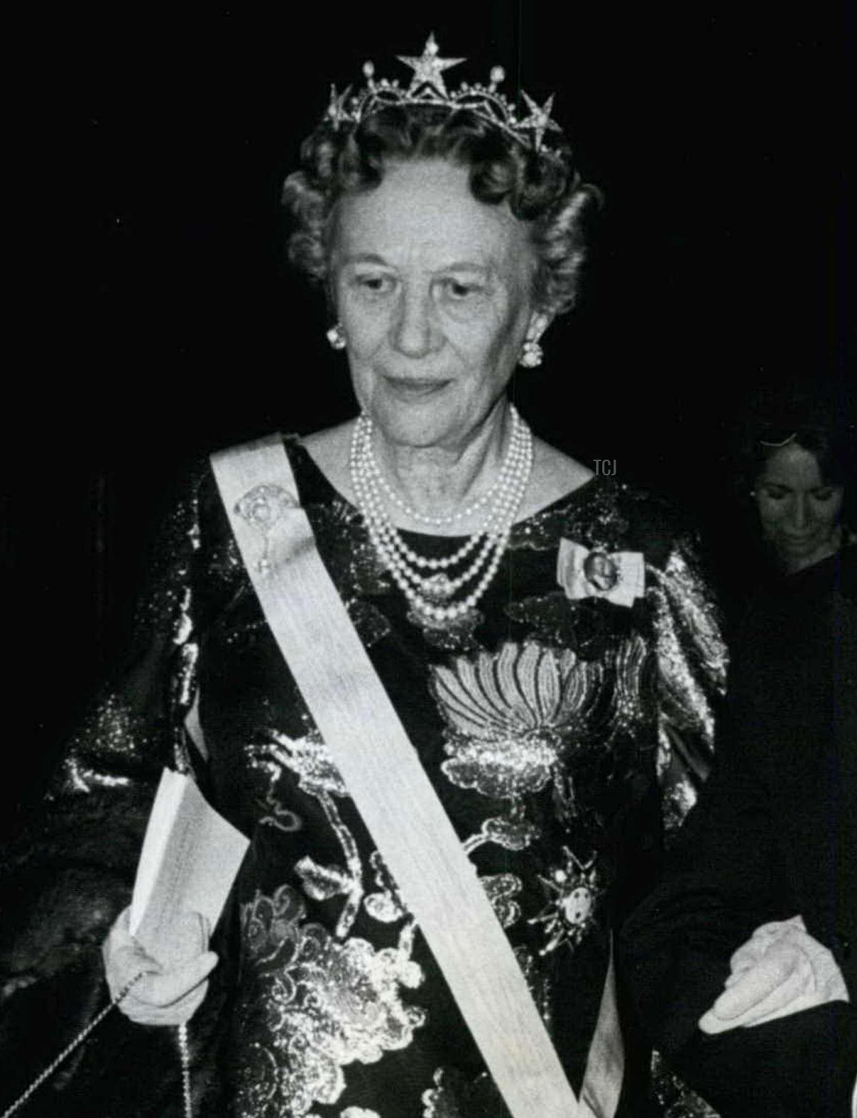 Here’s Carl and Ingeborg’s daughter, Princess Margaretha of Denmark, wearing the tiara at the Nobel Prize banquet in Stockholm on December 10, 1968. “Tante Ta,” as she was known by her numerous nieces and nephews, was a great supporter of her family members in Norway and Belgium after the early deaths of her sisters, and she returned often to her native Sweden to participate in royal events as well.