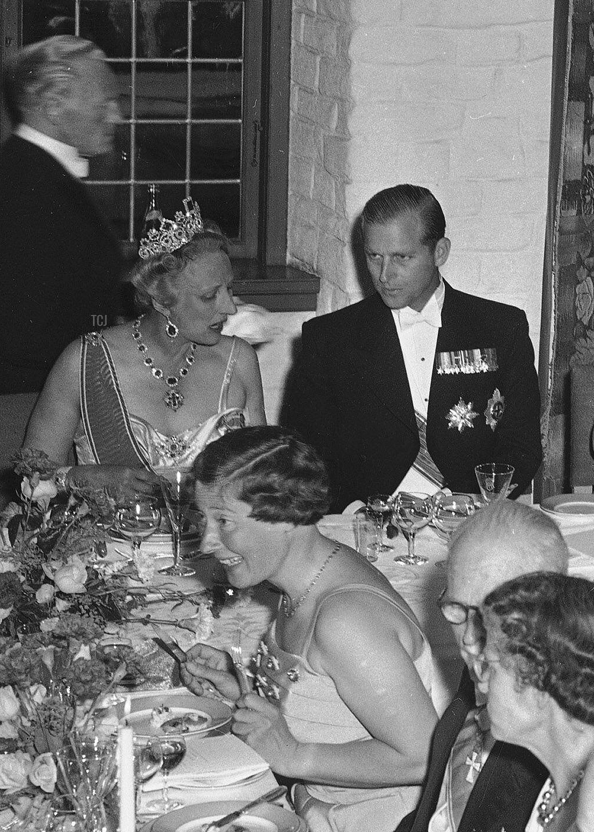 In 1953, Ingeborg was also in Norway for her brother’s 80th birthday celebrations. For a dinner at Akershus Castle, she wore yet another tiara from her collection: a diadem of diamond and pearl circles, said to have been acquired from Boucheron. (The leading historian of Norwegian royal jewelry, Trond Noren Isaksen, has recently cast some doubt on that claim.)