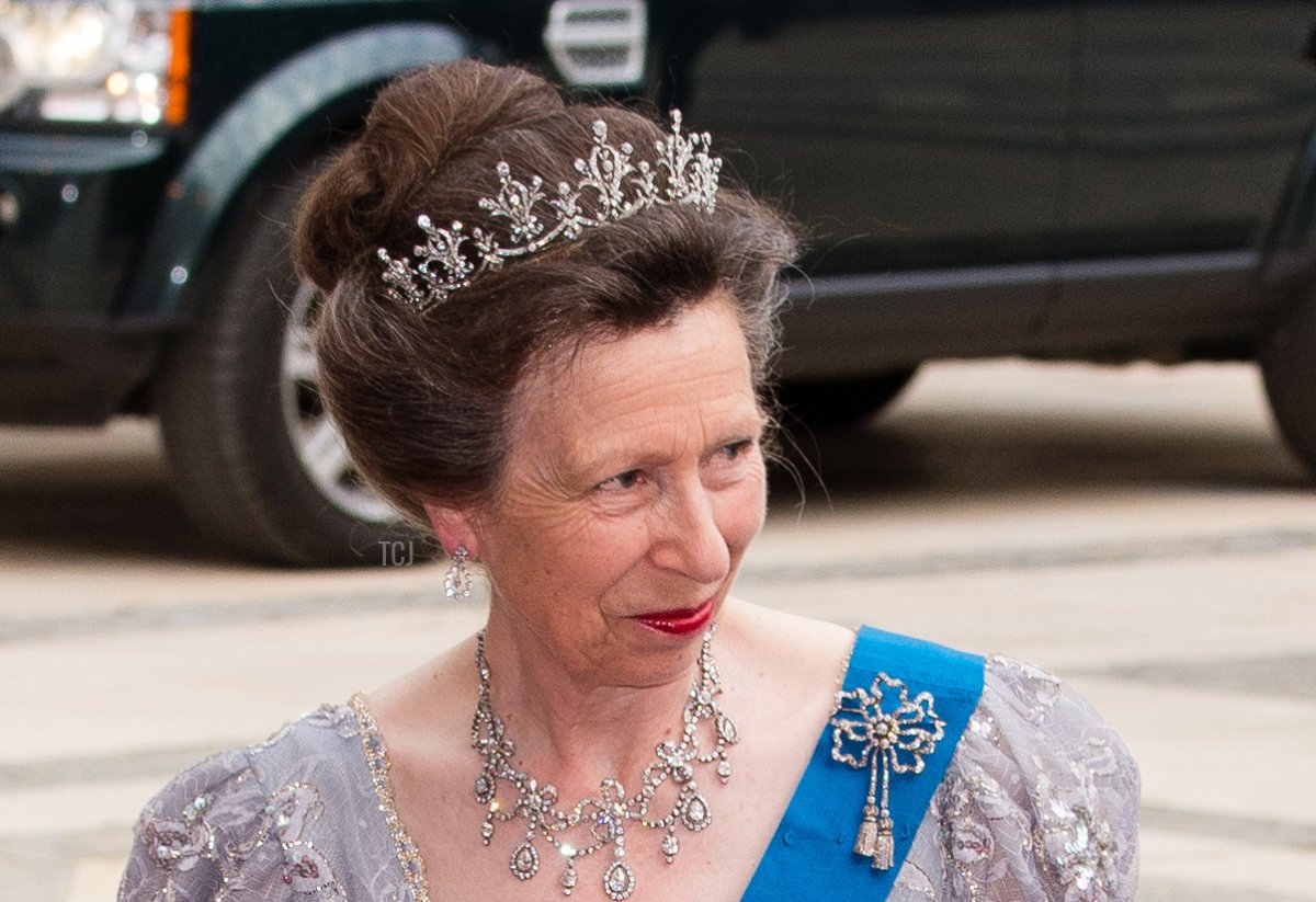 The new brooch coordinated beautifully with several other pieces of diamond jewelry in Anne’s collection. She had received a diamond festoon tiara in May 1973 when she launched the World Unicorn, a tanker owned by the Hong Kong-based World-Wide Shipping Group. The tiara was a natural fit with the diamond festoon necklace and matching earrings given to her by her parents, Queen Elizabeth II and Prince Philip, as an 18th birthday present in August 1968.
