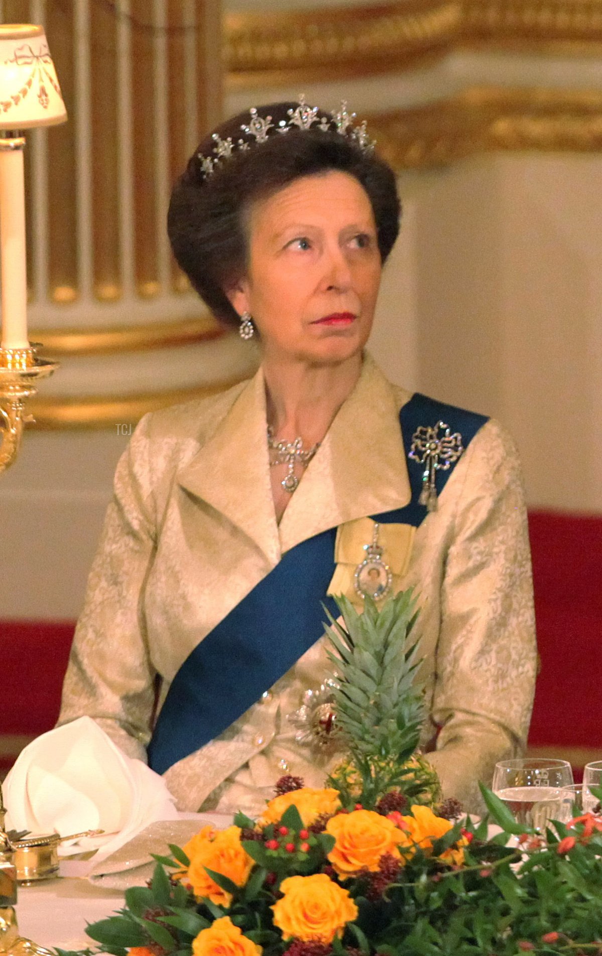 We got an excellent look at the entire married suite in July 2017, when Anne wore all of the pieces together for a banquet at the Guildhall in London honoring the visiting King Felipe VI and Queen Letizia of Spain.