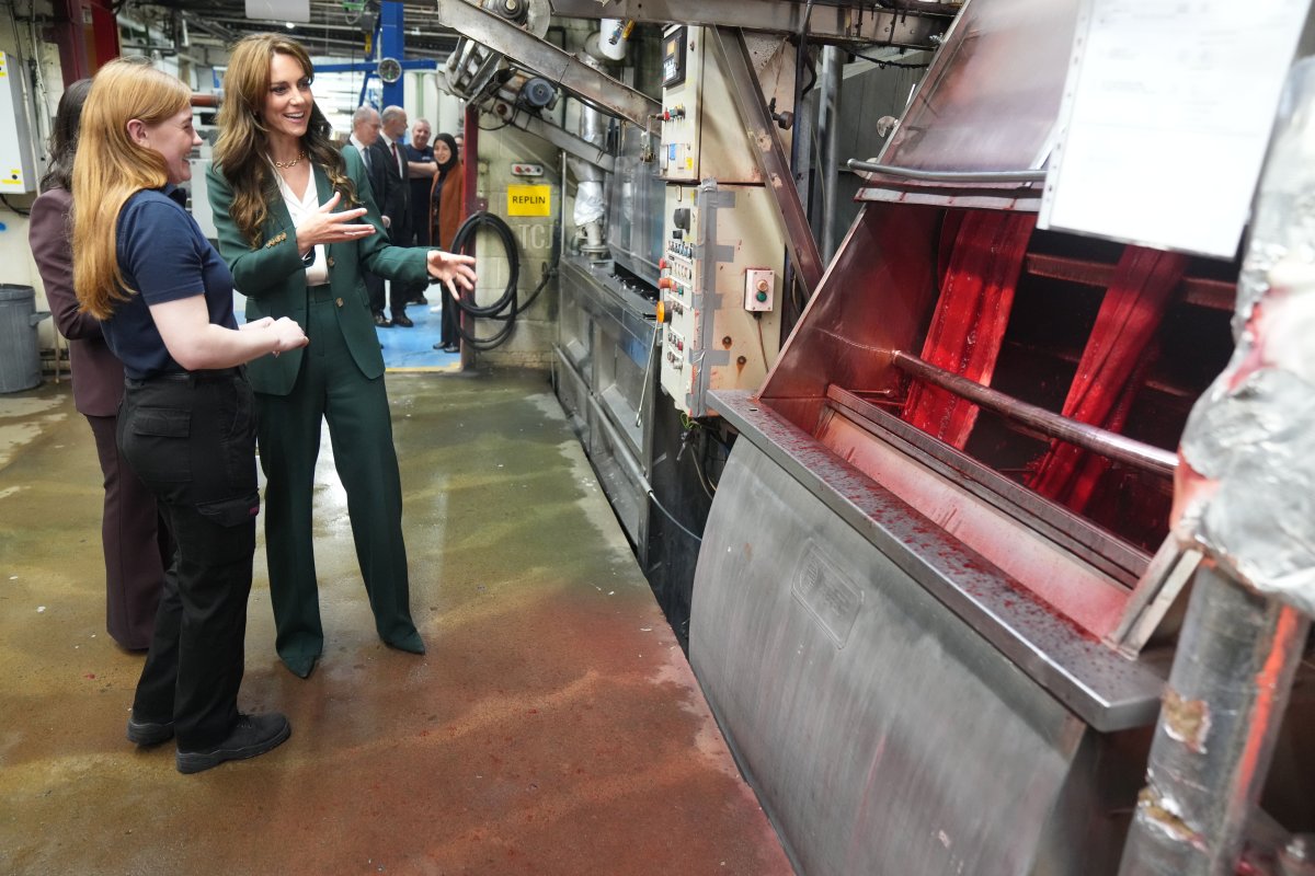 During her visit, Princess Kate walked through each stage of the production process with representatives from the firm, learning about modern developments that have revolutionized the industry.