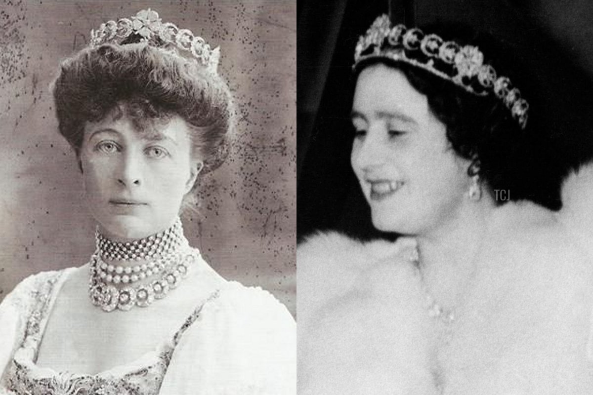 The Queen Mother’s tiara collection also included several antique pieces given to her by Queen Mary. Among these is the Teck Crescent Tiara, which belonged to Mary’s mother, Duchess of Teck, and was later worn by Mary’s sister-in-law, the Marchioness of Cambridge. Later, the tiara found its way to Mary’s collection, and she handed it over to her daughter-in-law, the Queen Mother, to wear.