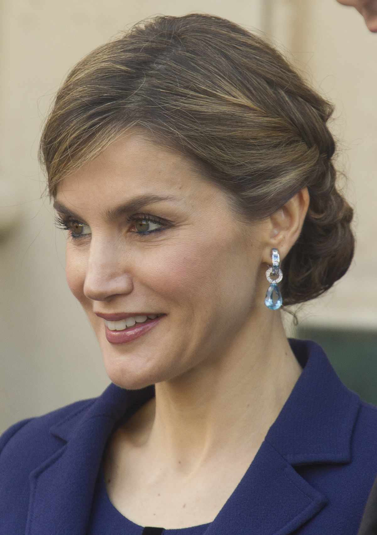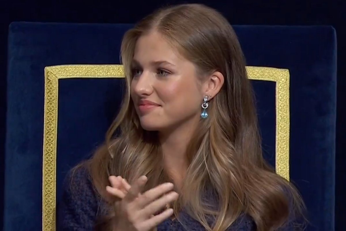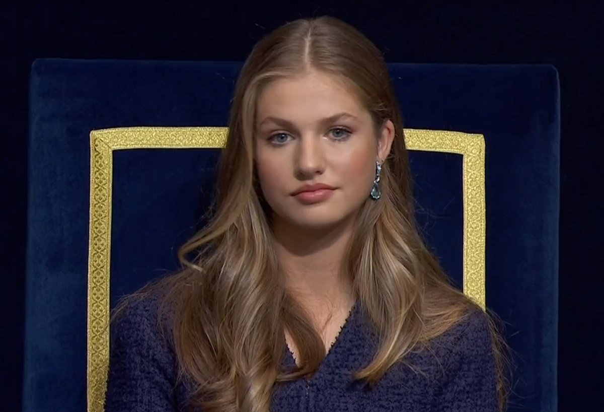 Here’s one more look at the earrings on Princess Leonor during her speech on Friday. You’ll note that there’s also a little extra sparkle on her ear, courtesy of a small stud in a second piercing.
