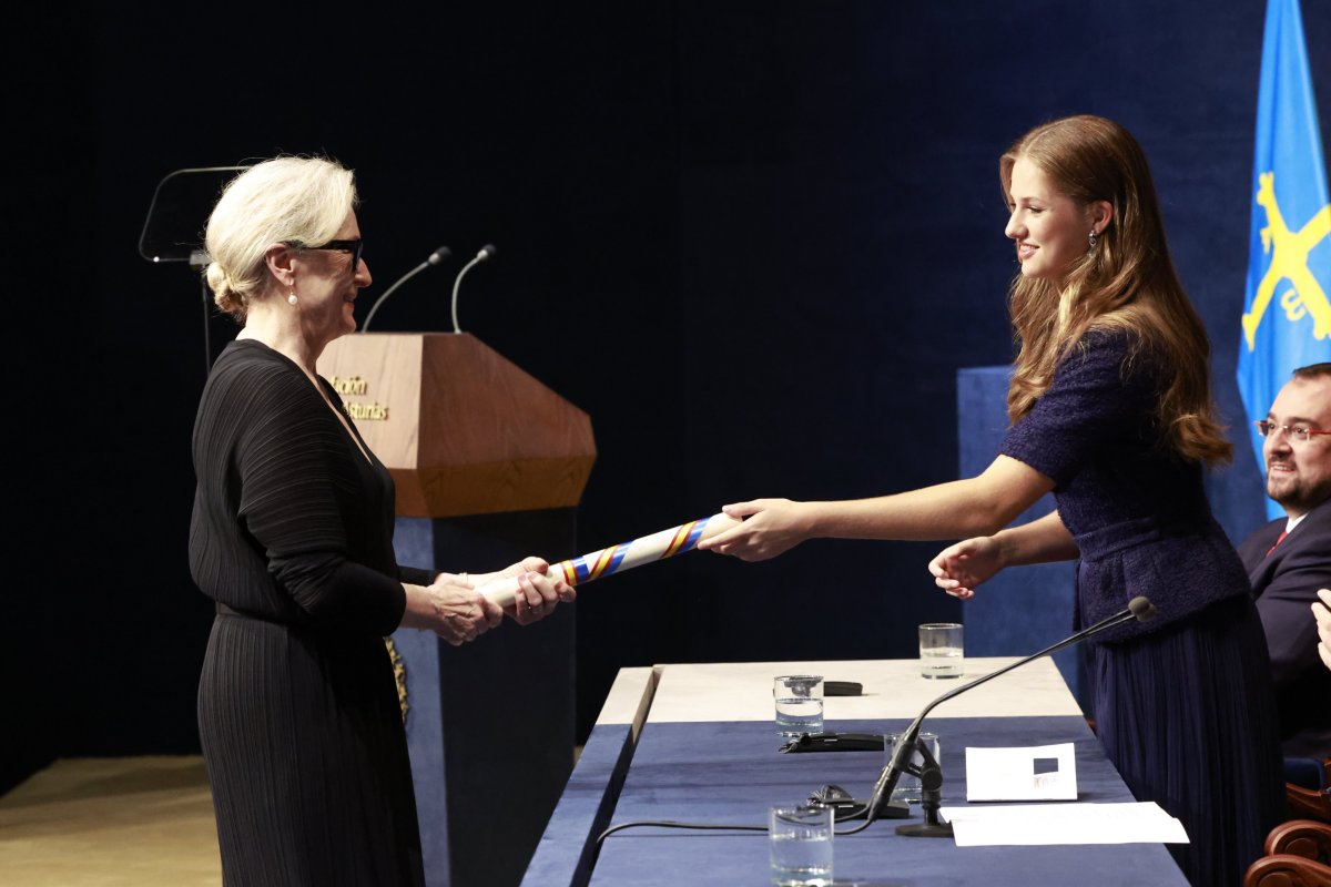 There were numerous impressive honorees at this year’s ceremony. Probably the most notable was the American actress Meryl Streep. Above, Leonor presents one of the prizes to Streep during the ceremony.