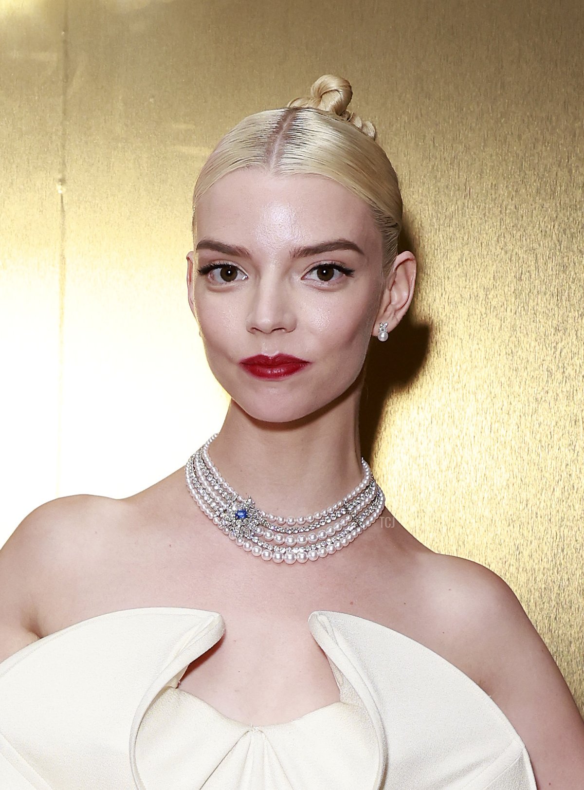Here’s another look at all of Taylor-Joy’s Tiffany jewels for the event, including a ring with another blue gemstone. The necklace is the kind of new-but-classic piece that I like to see royals borrowing or even acquiring these days. Wouldn’t it look great on the Princess of Wales? (She doesn’t need it, of course—there are plenty of fabulous pearls to borrow from the Buckingham Palace vaults.)