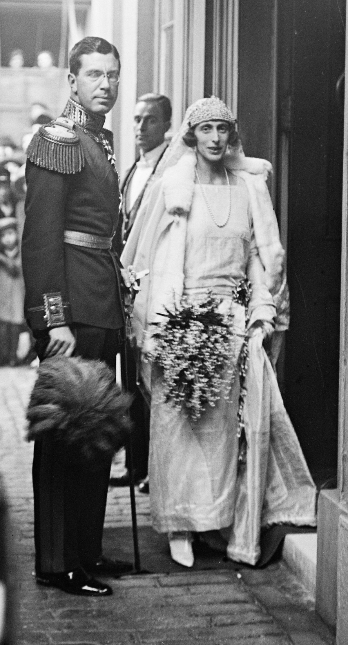 To the strains of the hymn, “Lead Us, Heavenly Father, Lead Us,” Louise arrived at the altar to meet her groom. The Archbishop of Canterbury, Randall Davidson, performed the ceremony, assisted by the Bishop of London, Arthur Winnington-Ingram. (It was the second marriage of a future monarch that Davidson had presided over that year, after the nuptials of the Duke and Duchess of York in April 1923.) During the vows, Gustaf’s excellent English was particularly noted—the result of having been a member of the extended British royal family for years already. He slipped a plain gold band, purchased in London, on Louise’s finger. A reporter from the Sunday Illustrated was particularly touched by one spontaneous gesture from the Crown Prince: “There was a pretty and unconventional incident after the benediction. The Prince reverently raised his bride’s right hand to his lips and kissed it, giving her at the same time a glance of proud affection.” In response, the Daily Mirror reported, Louise’s “serious features relaxed into a slow, delighted smile.”