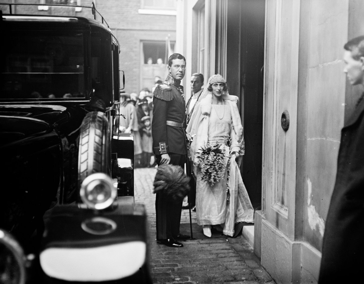 And here’s Louise’s younger brother, Lord Louis Mountbatten, posing on the wedding day with his wife, Edwina. Louis had married Edwina, the granddaughter and heiress of the wealthy Sir Ernest Cassel, in July 1922 at St. Margaret’s Church, Westminster. They would later become, of course, the last viceroy and vicereine of India, and Louis would be created Earl Mountbatten of Burma in 1947. He exercised considerable influence as the uncle of the Duke of Edinburgh during Philip’s marriage to Queen Elizabeth II.