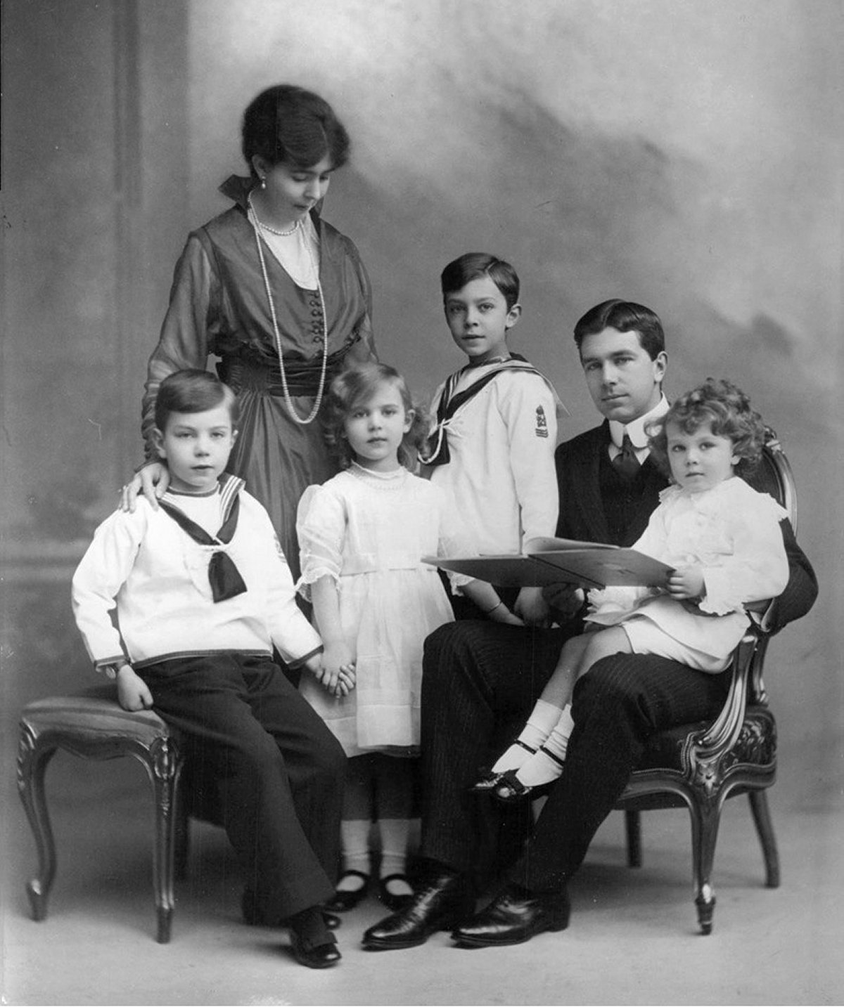 Here’s Louise’s brother George, the Marquess of Milford Haven, with his wife, Nadejda, who was called “Nada,” and their children, Tatiana and David. Like his father, George Milford Haven was a naval officer. He was also reportedly one of the smartest members of the entire royal family, especially skilled in mathematics. Sadly, he suffered an early death, dying of cancer in 1938.