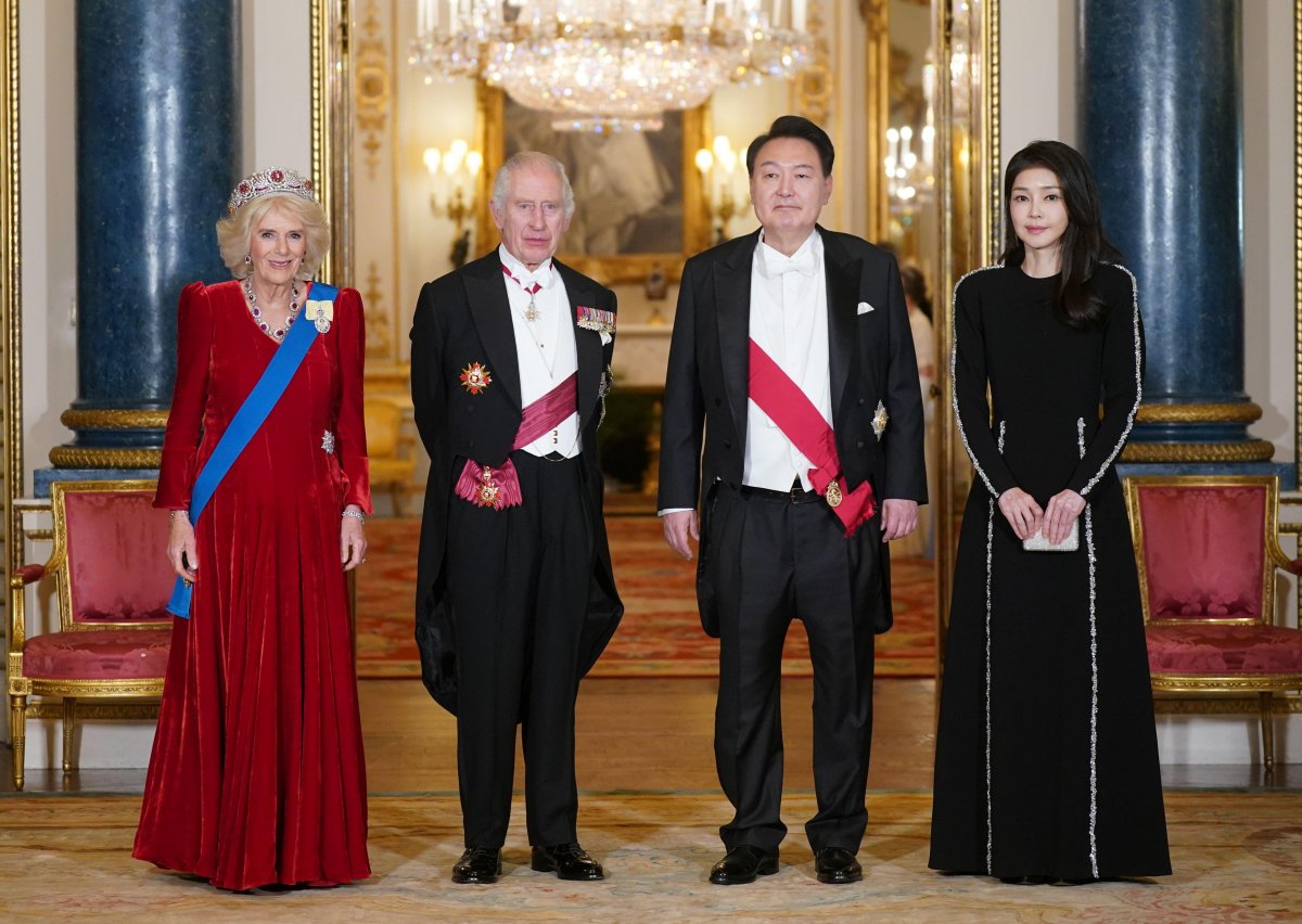 King Charles III and Queen Camilla led the royal party at tonight’s state banquet at Buckingham Palace, held in honor of President Yoon Suk Yeol of South Korea and his wife, Kim Keon-hee.