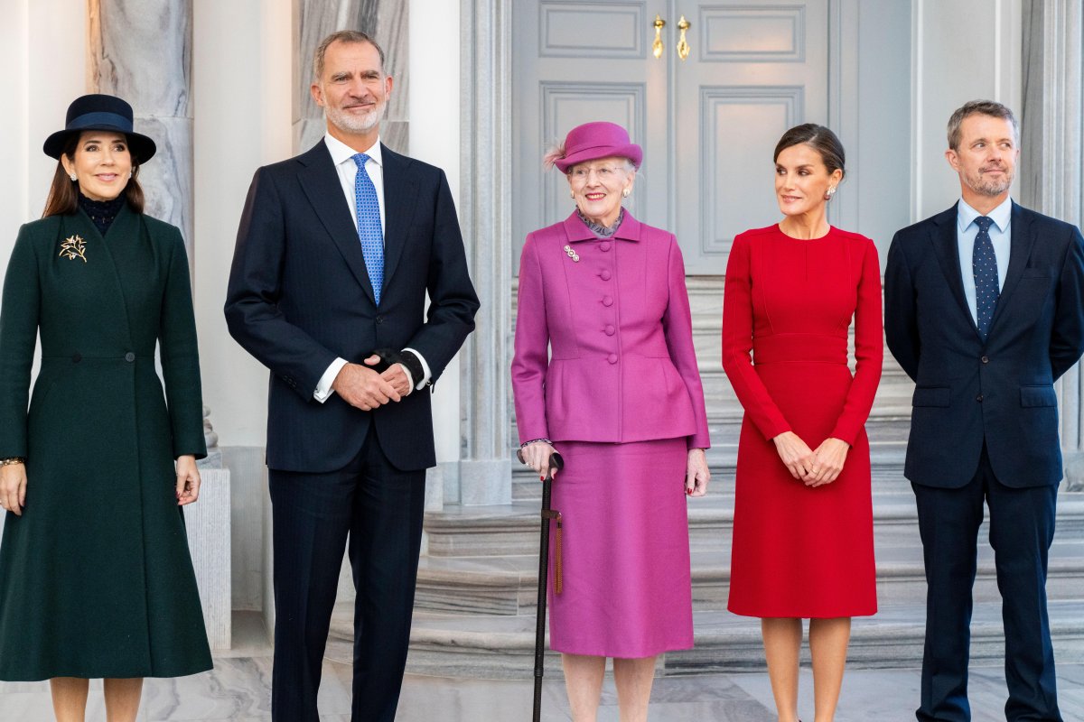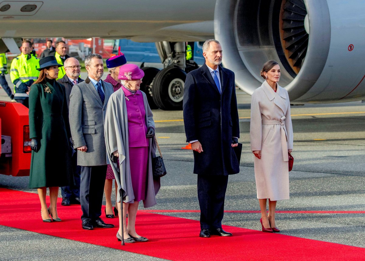 King Felipe VI and Queen Letizia of Spain touched down in Copenhagen on Monday to begin their state visit to Denmark. They were greeted at the airport by Queen Margrethe II of Denmark, who was joined by Crown Prince Frederik, Crown Princess Mary, and Princess Benedikte. After the airport reception, the royals headed to Amalienborg Palace for an official welcome ceremony.