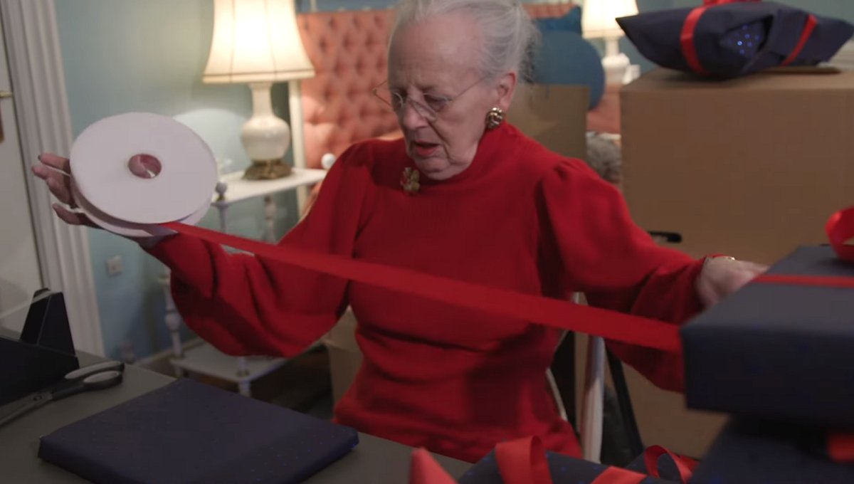 We’ve also gotten a few more glimpses of Christmas preparations inside the Danish palaces. Queen Margrethe II was shown decorating gifts in a special present-wrapping station that she installed in a palace guest room.