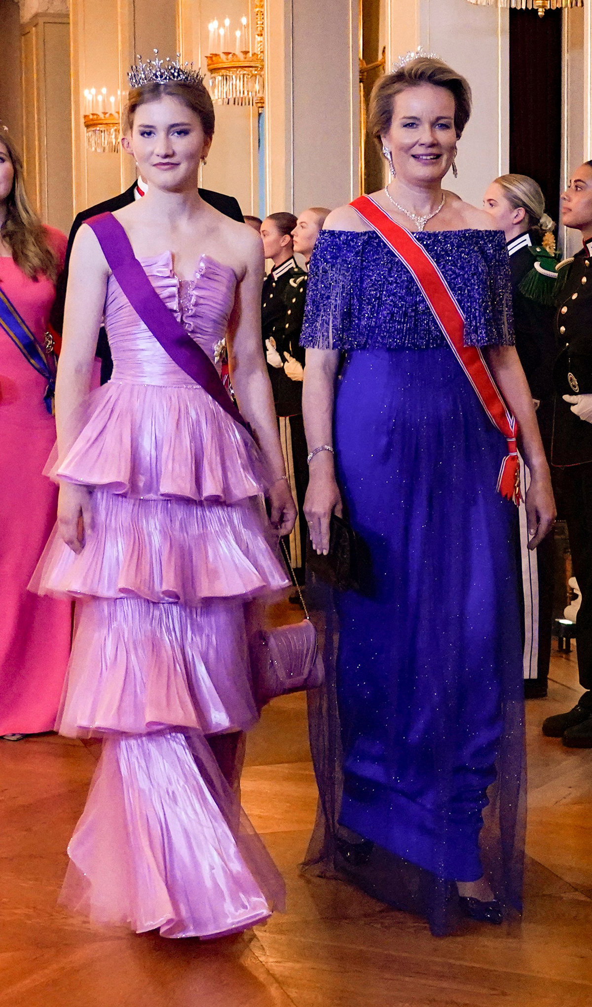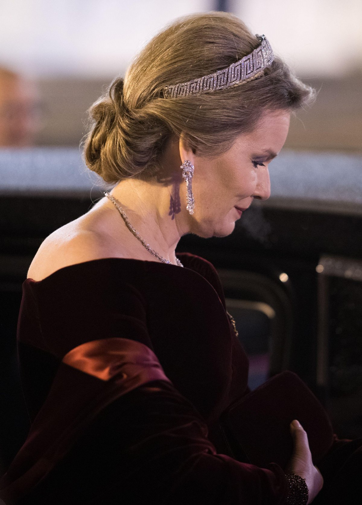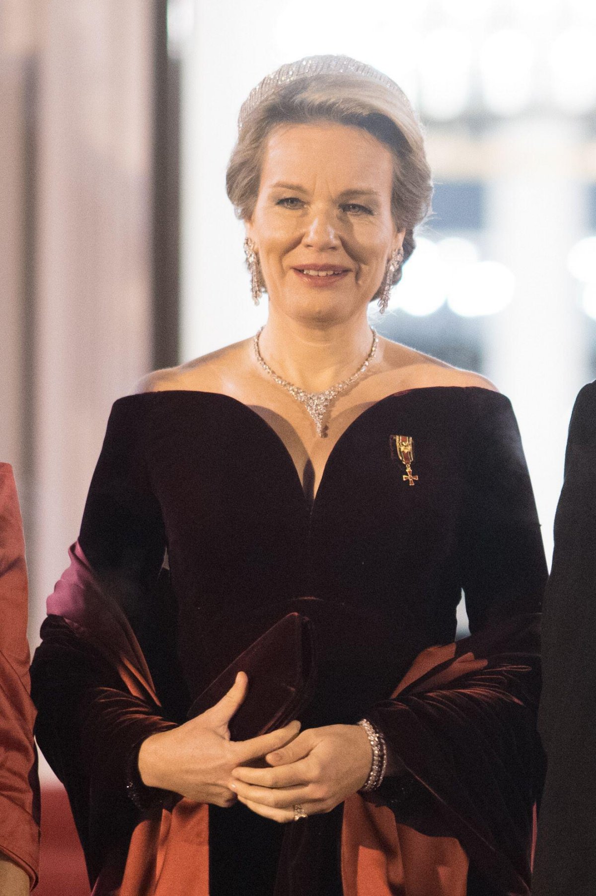 The tiaras were out on Tuesday on the continent as well, with Queen Mathilde of the Belgians sparkling her way through a state banquet in Germany.
