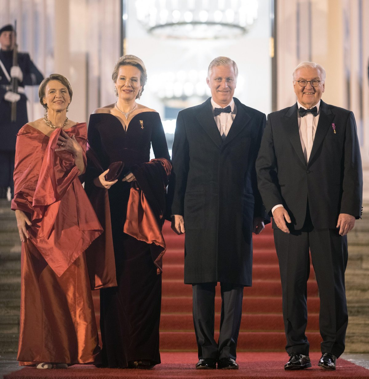 The King and Queen of the Belgians were the guests of honor at a state banquet hosted by German President Frank-Walter Steinmeier and his wife, Elke Büdenbender, at Schloss Bellevue in Berlin on Tuesday.