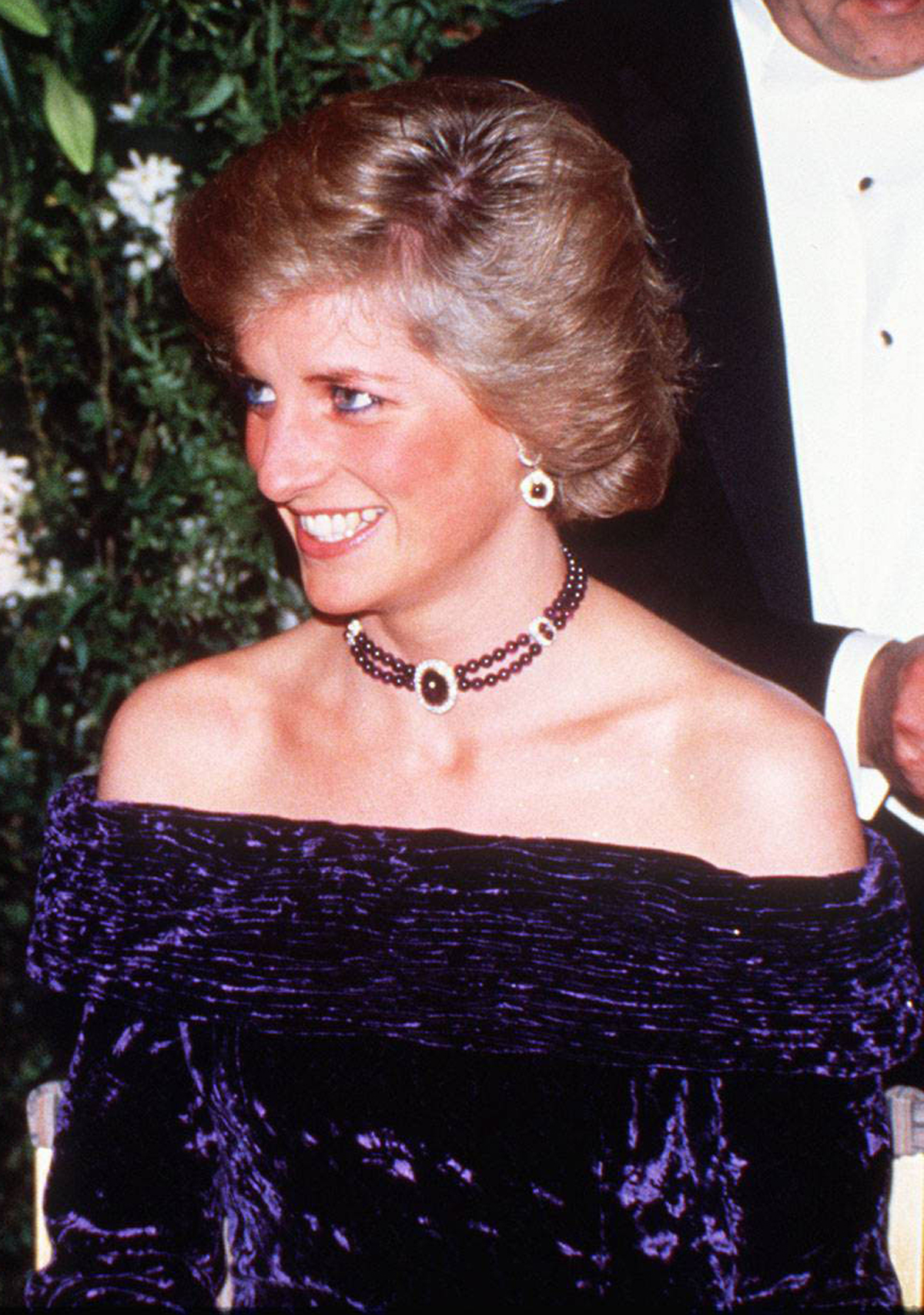 Diana sometimes wore the amethysts with a classic pearl choker necklace. The necklace features eleven rows of seed pearls set between diamond and ruby spacer elements. Wouldn’t the choker look fabulous on Kate’s long neck, too?