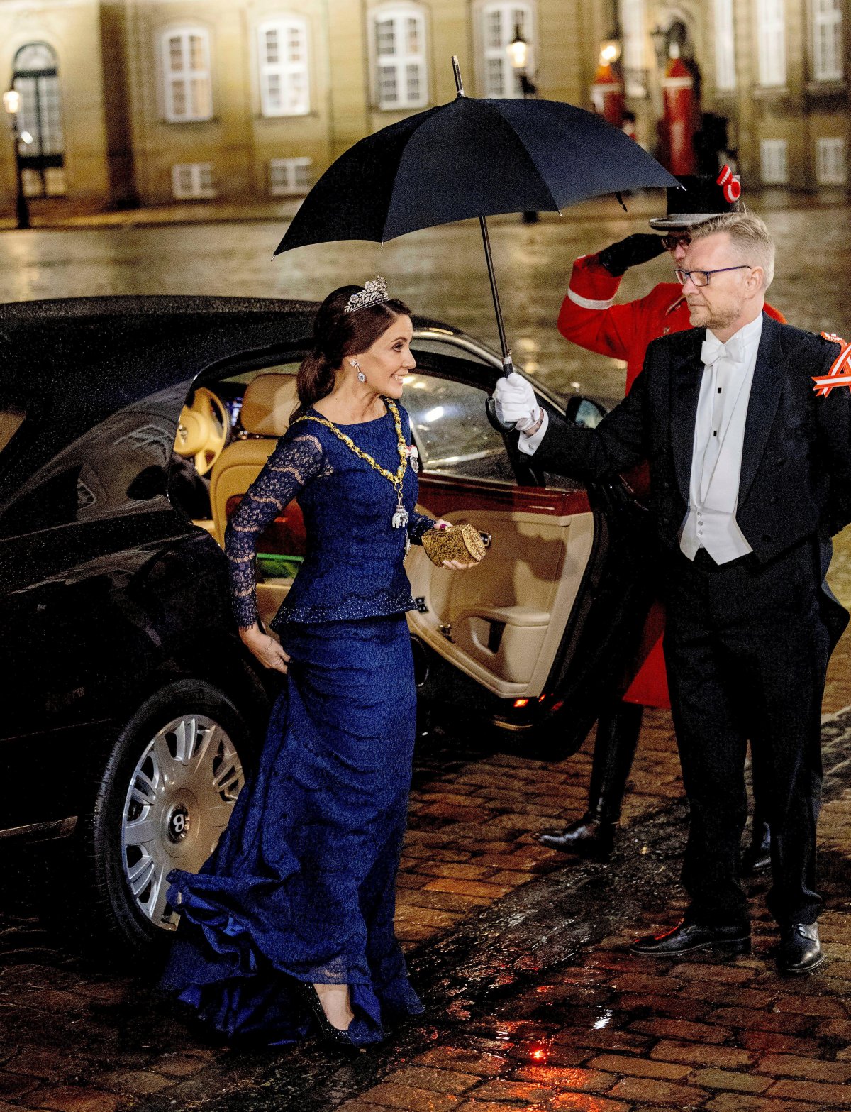 Princess Marie wore a favorite navy blue evening gown from her collection.